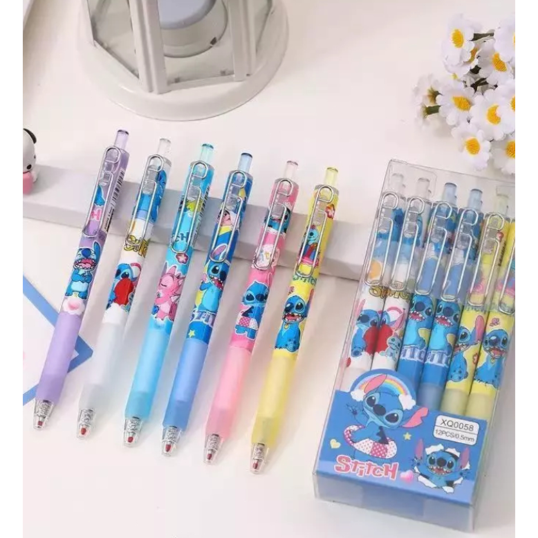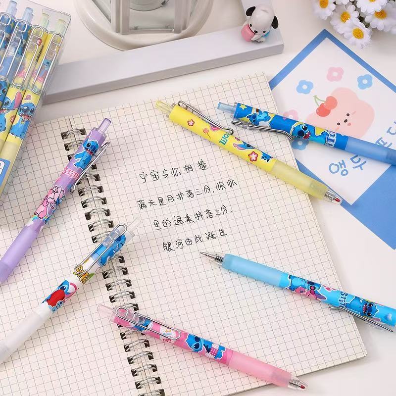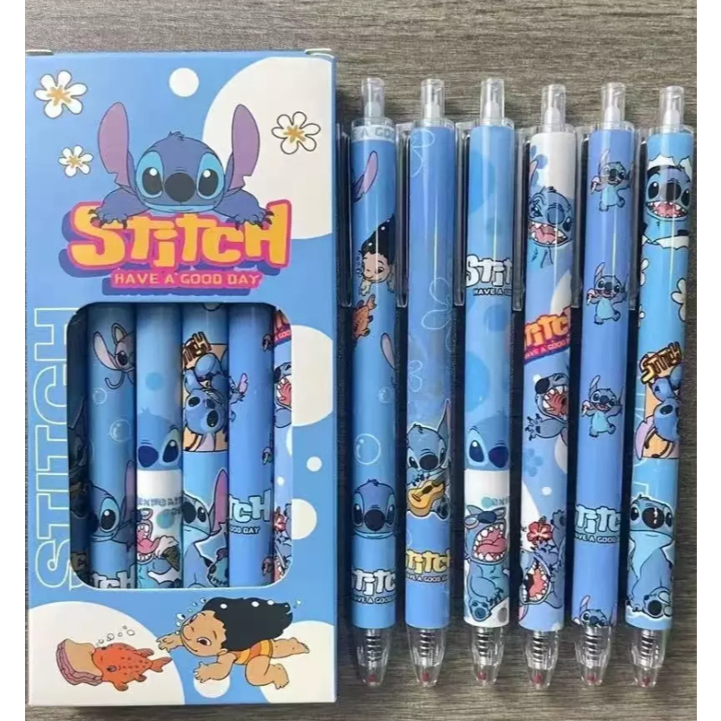Kit 6/12/24 peças canetas Stich esferográfica E Boneca de click Papelaria Fofa volte para escolar
