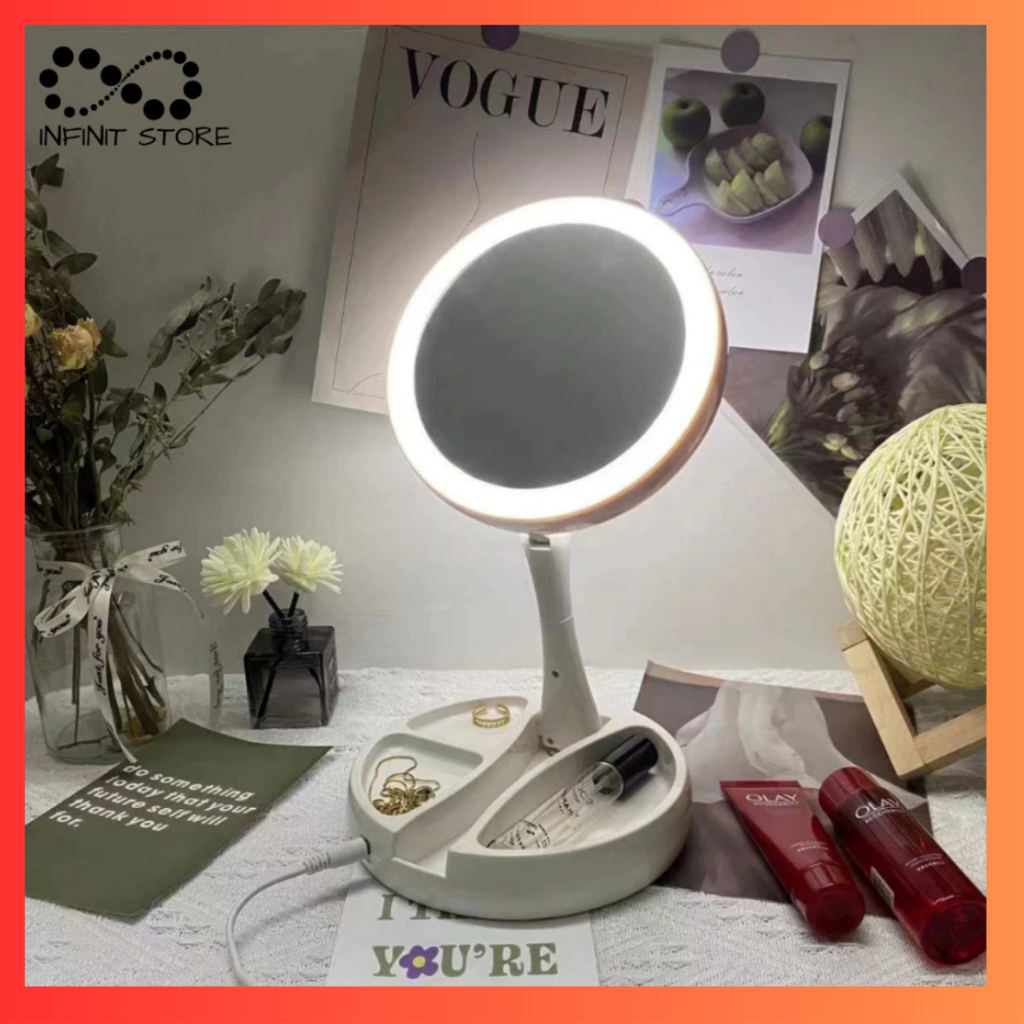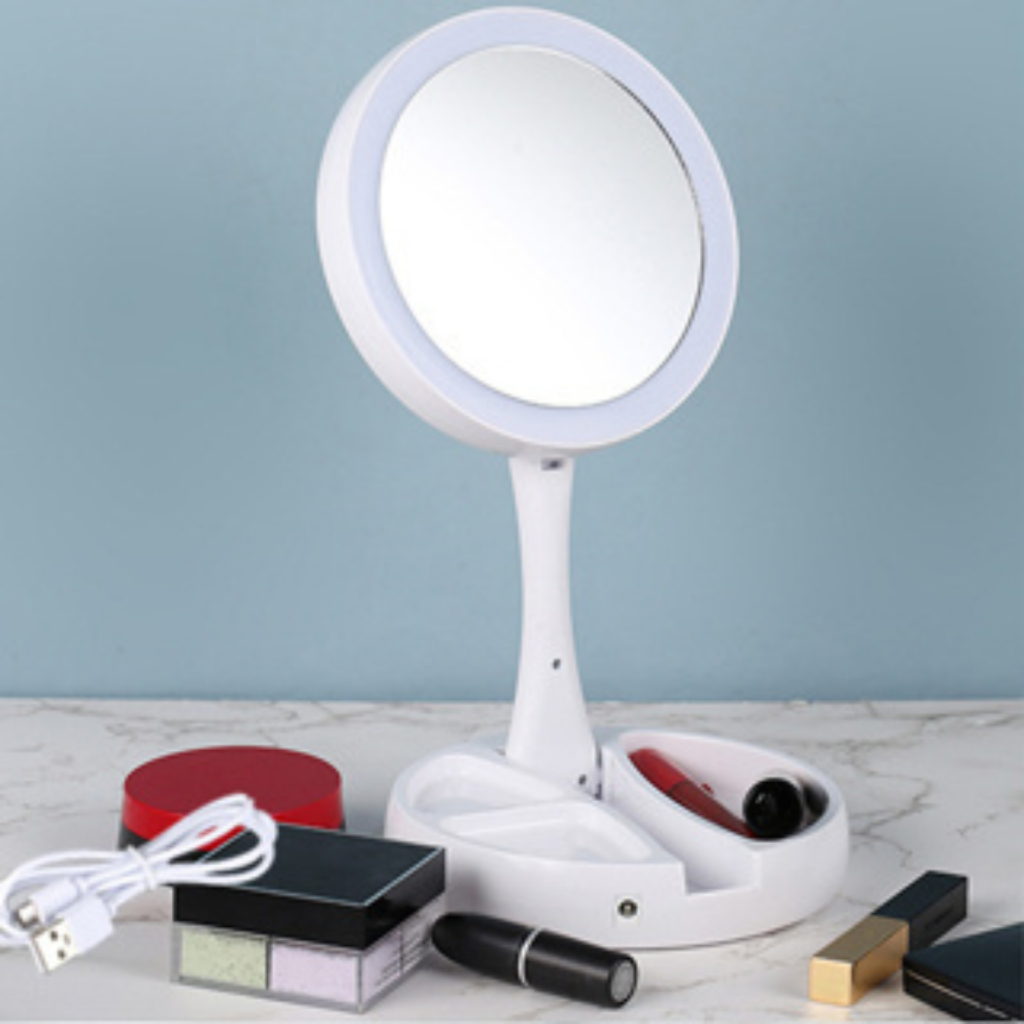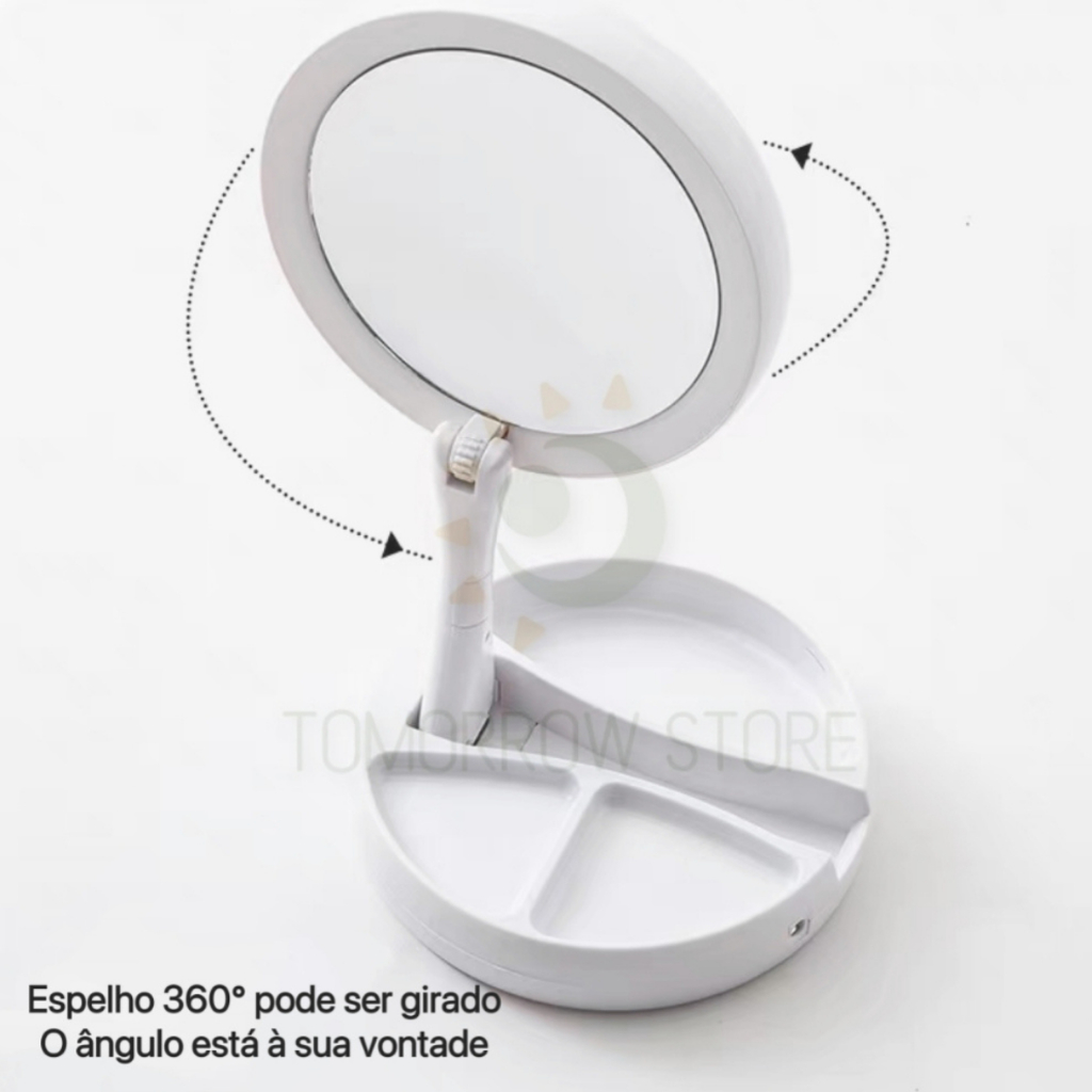 Espelho De Maquiagem LED Dobrável Portátil Com 10x De Aumento