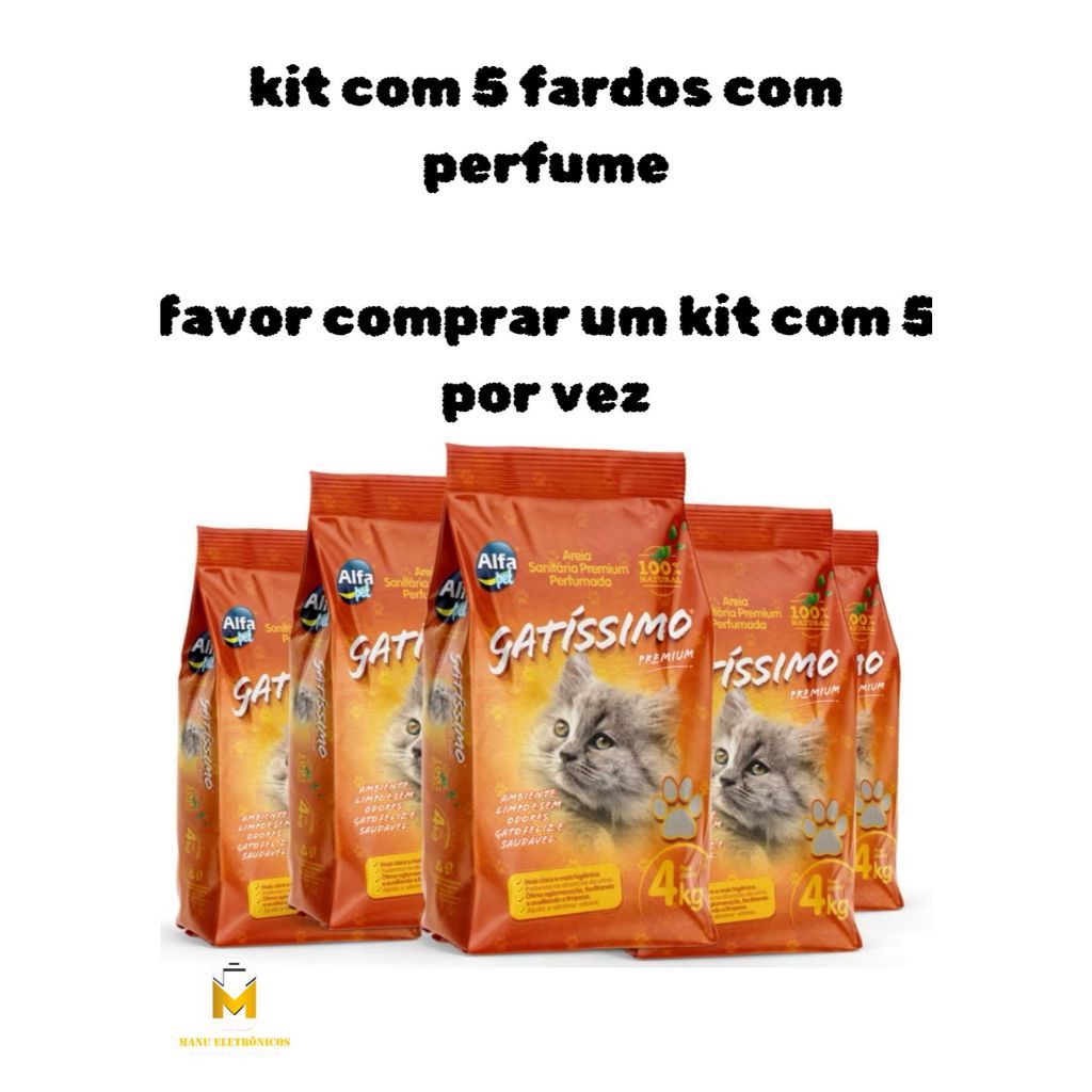 Kit 5un. Areia Sanitária Higiênica Para Gatos Anti Odor Gatíssimo 20kg Total