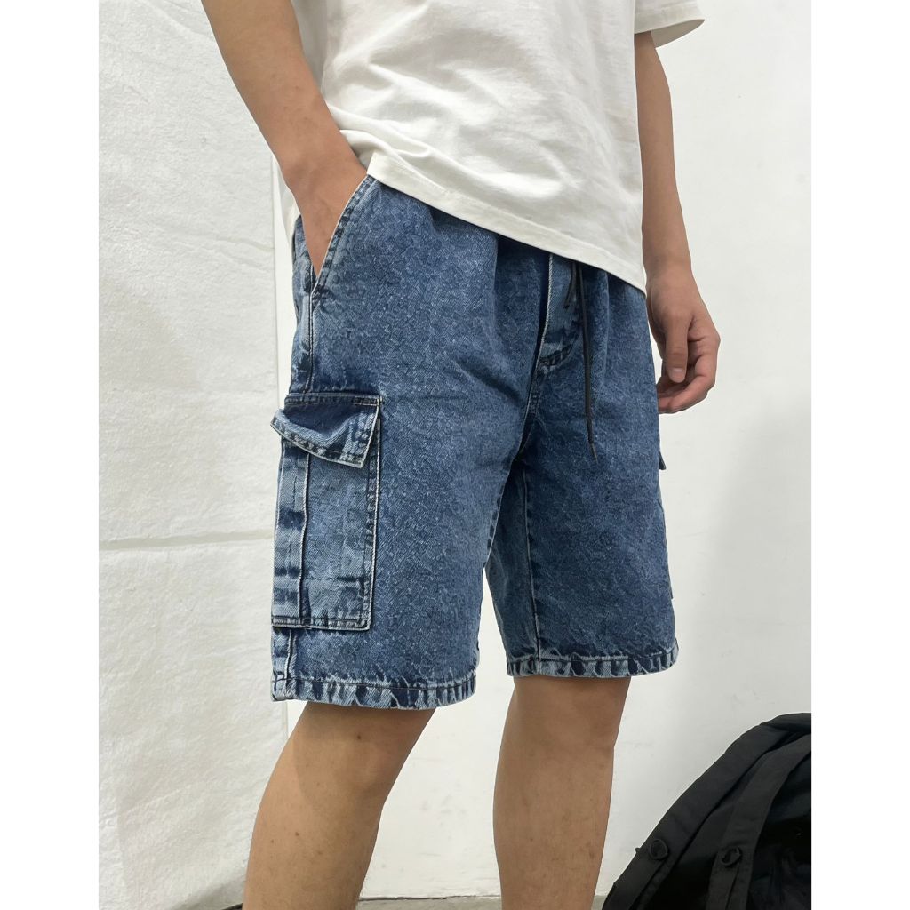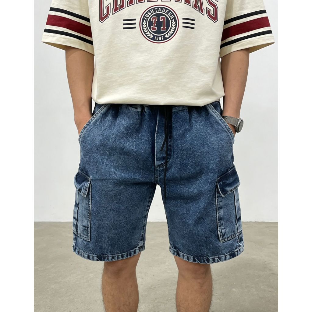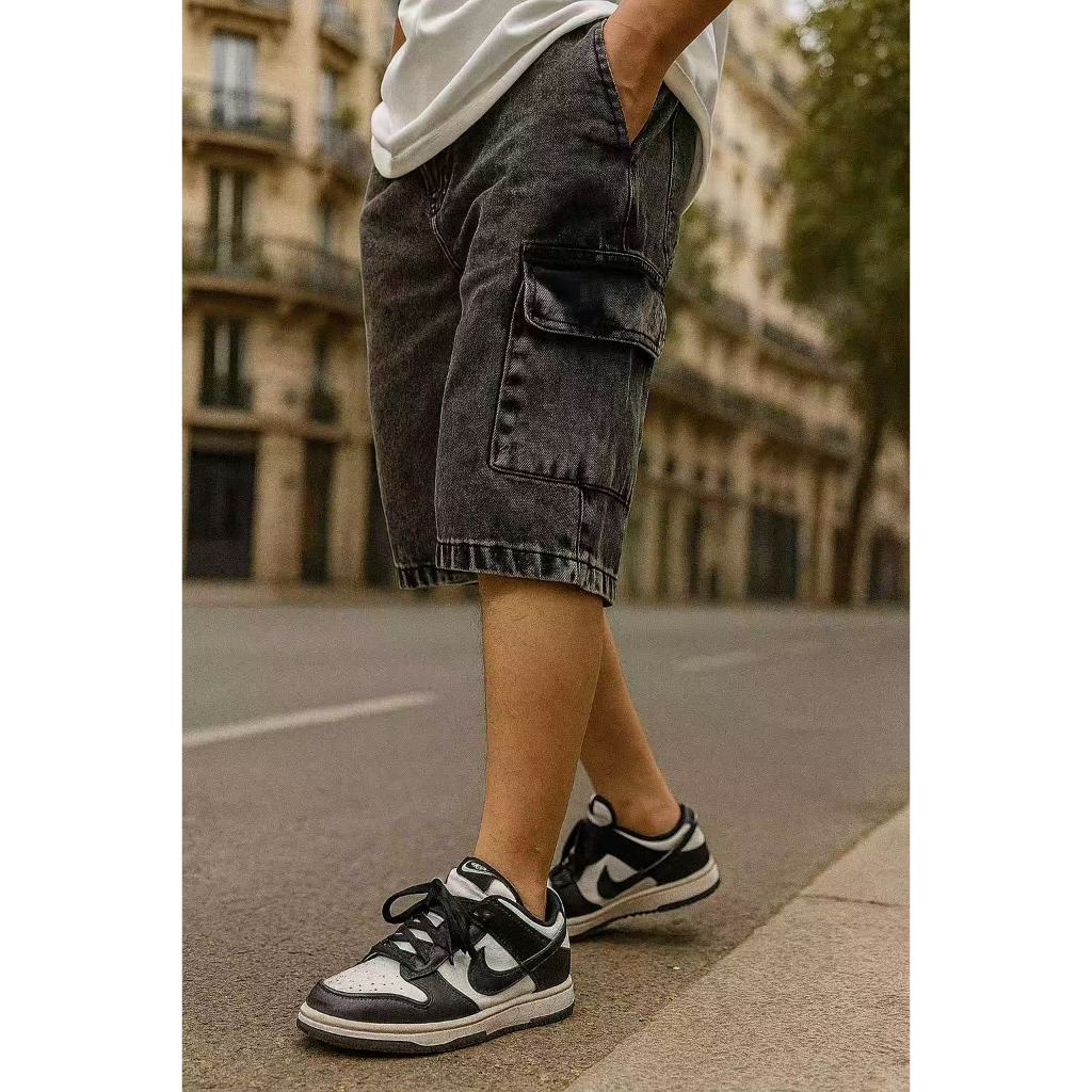 Bermuda Cargo Masculina Jeans Estonado Baagy Streetwear Solta Casual com Bolsos Grandes Cintura Codao P AO GG