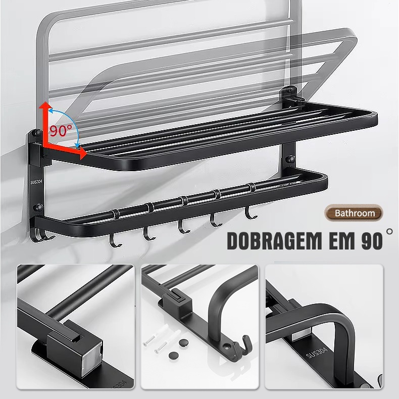 Suporte Para Banheiro Organizador De Banheiro Toalheiro Porta Toalha Inox 40/50/60cm Retrátil 90 °