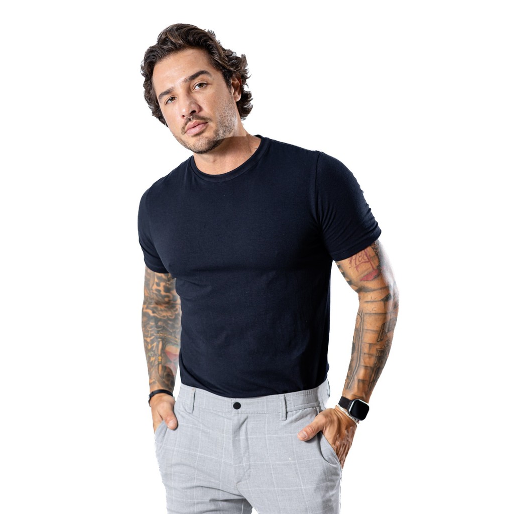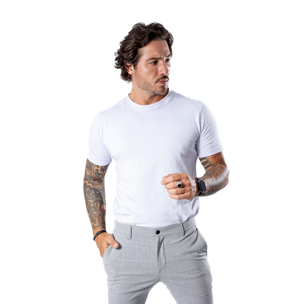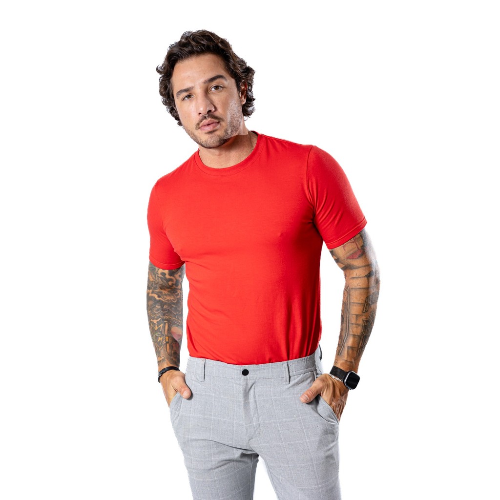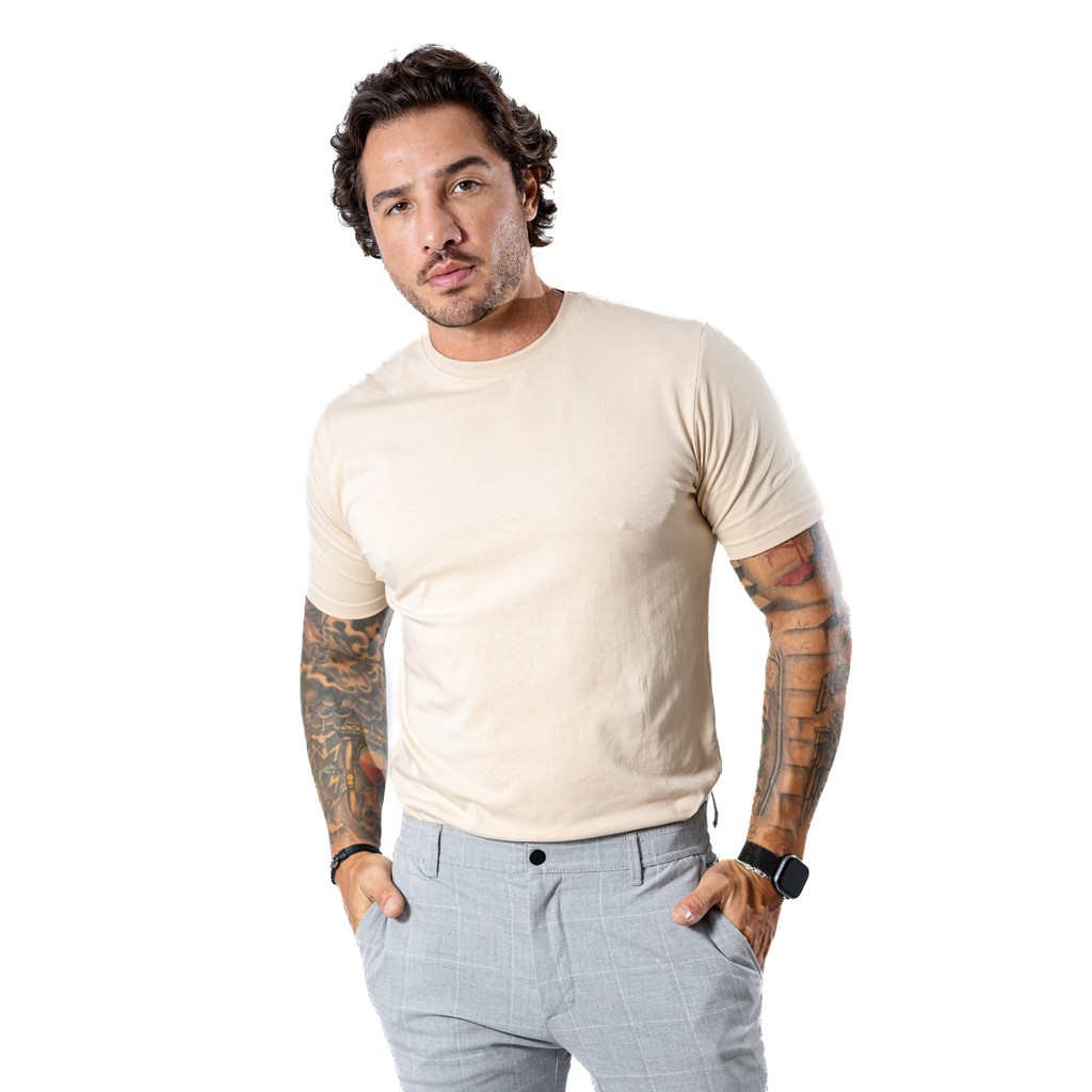 Camisa Básica Malha Peruana Com Elastano Modelo Tradicional Original Homem
