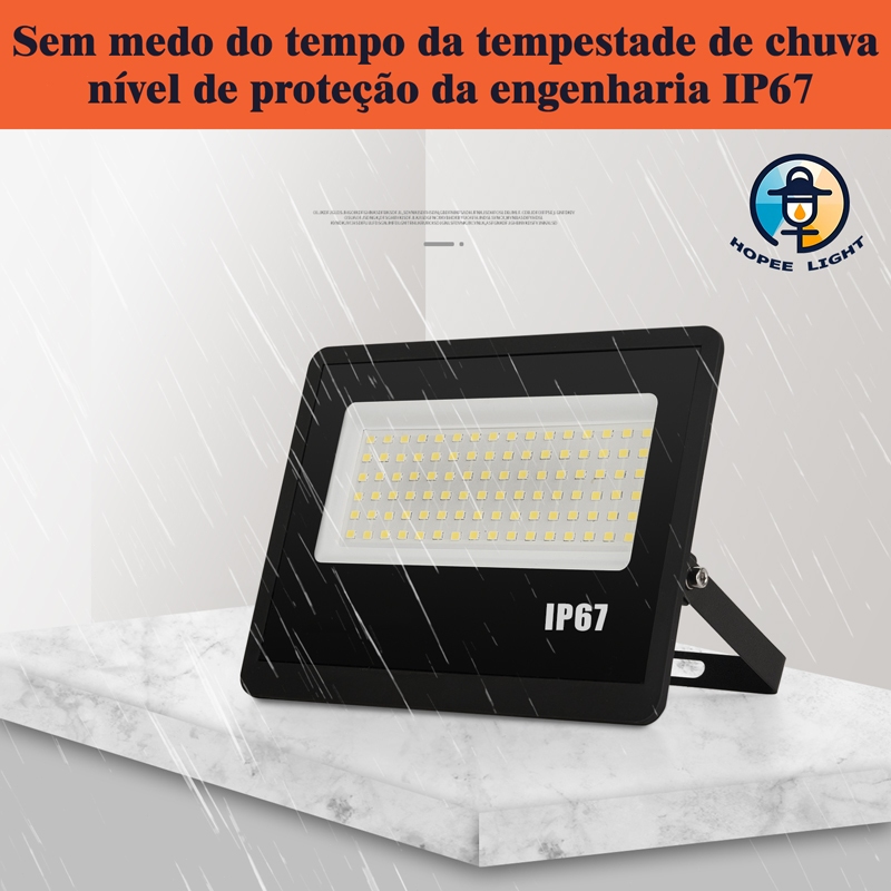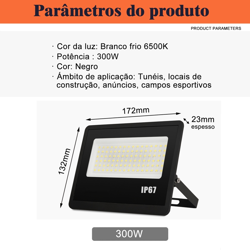 Kit 5 Refletor Super LED 300W Luz Frio 6500K 8-10m Alcance 75m² Preto IP67 Alta Eficiência 110-265V