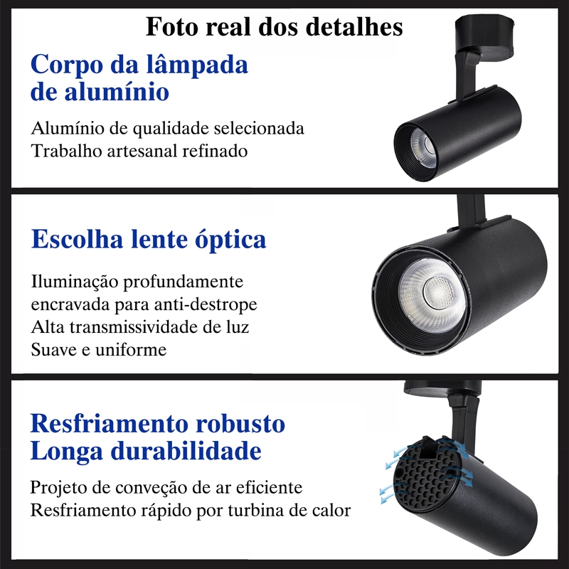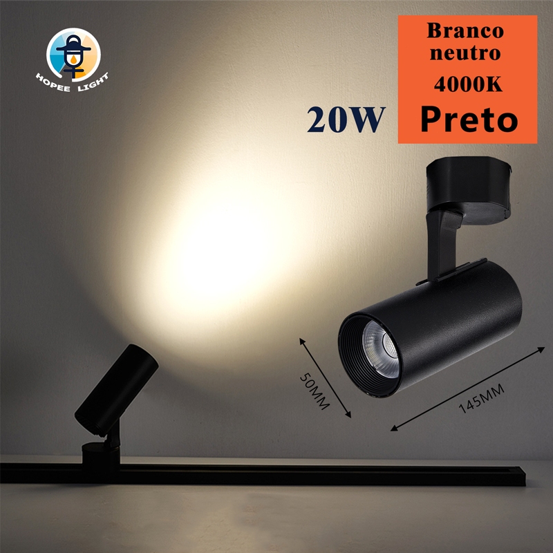Trilho Eletrificado Spot LED 20W Preto Bivolt Luz (Frio/Neutro/Quente) Kit de 1 Metro e 2 Metros