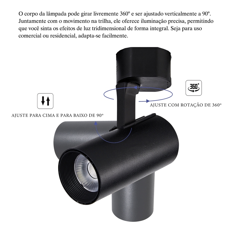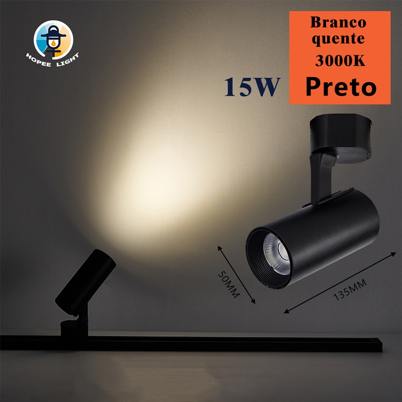 Kit de 1M e 2M Trilho Eletrificado Spot LED 15W Preto Bivolt Luz (Frio/Neutro/Quente) Economico