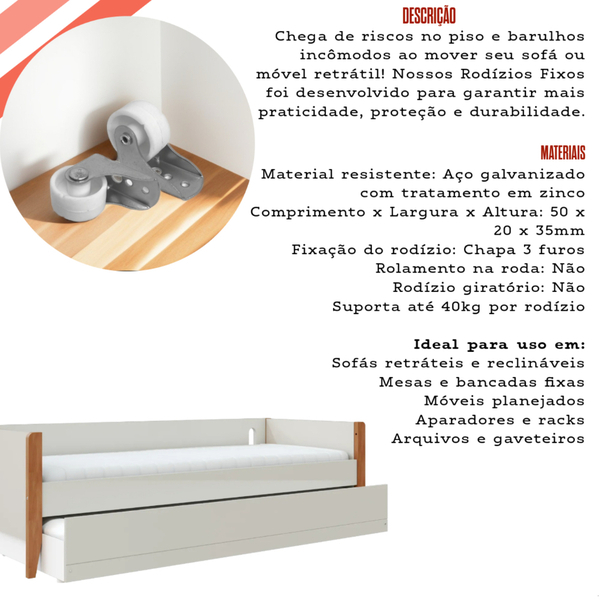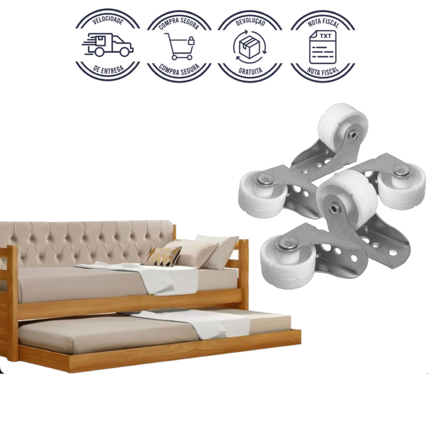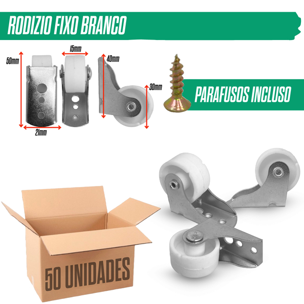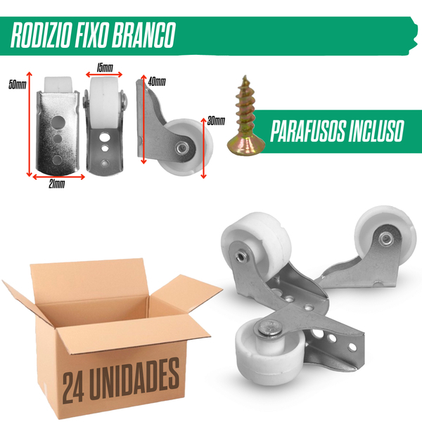 Kit 20/24/50/100 Rodinhas Para Móveis Cama Auxiliar Rodízio Fixo 30mm Branco C/ Parafuso Sofá Bicama