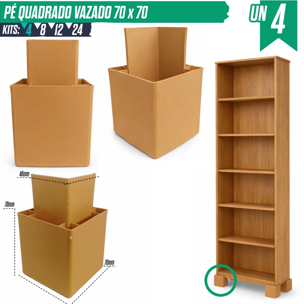 Kit 4/8/12/24 Pé Quadrado Vazado para Móveis Armário Pezinho Reforçado Estante