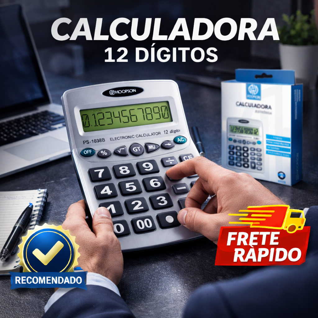 Calculadora Grande 12 Dígitos Visor Amplo Teclas Macias Leve Ideal Escritório e Estudantes Mesa