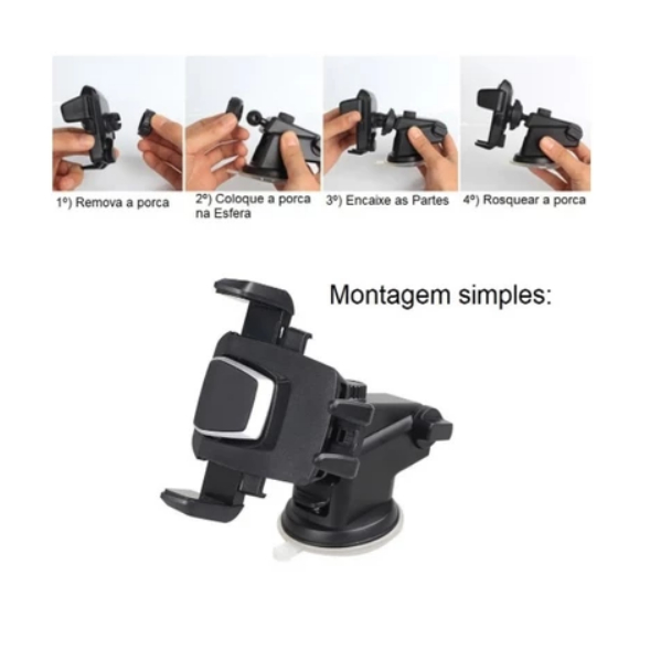 Suporte Veicular para Celular Universal • Painel e Para-brisa • Rotação 360° • Antiderrapante