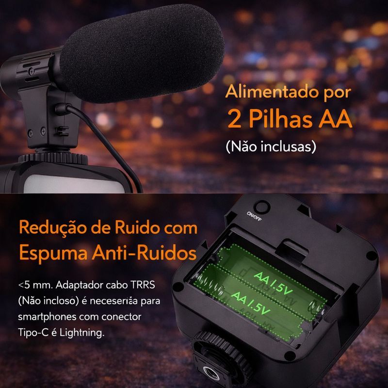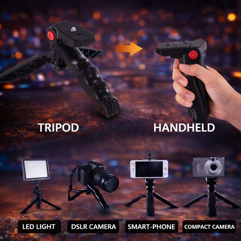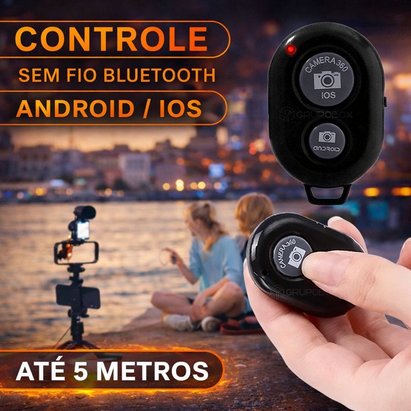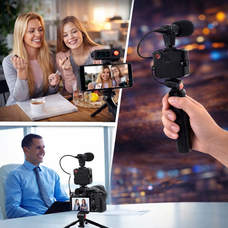 Tripé Estabilizador de Mão c/ LED, Microfone e Controle Bluetooth p/ Celular Gravação Vlog Live