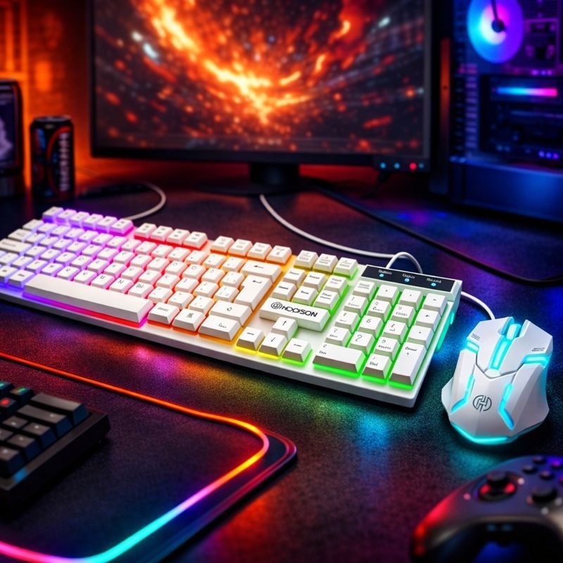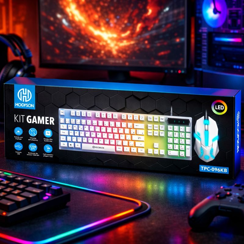 Kit Teclado e Mouse branco Gamer RGB LED USB ABNT2 Profissional com Luz para PC Notebook Promoção