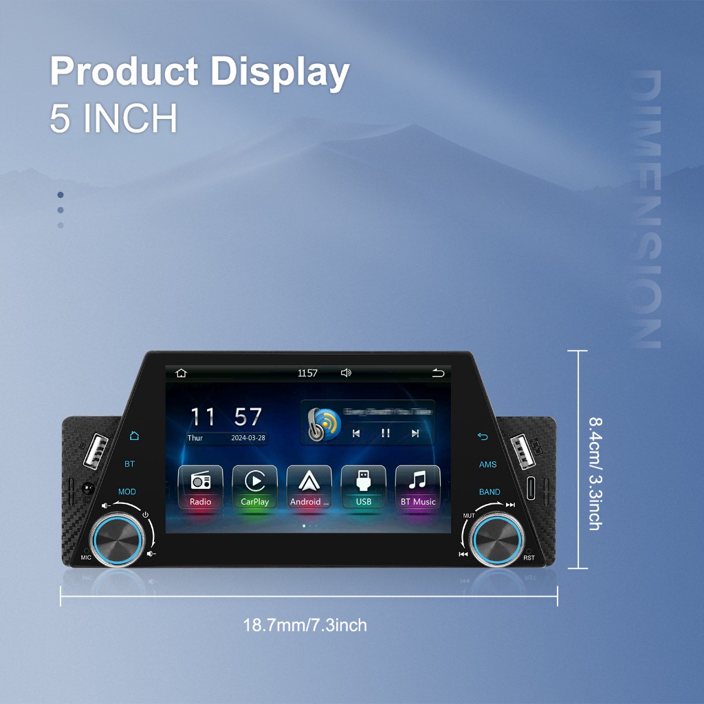 Central Multimídia MP5 5" 1Din Tela Touch Bluetooth Android Auto CarPlay MirrorLink com câmera de ré