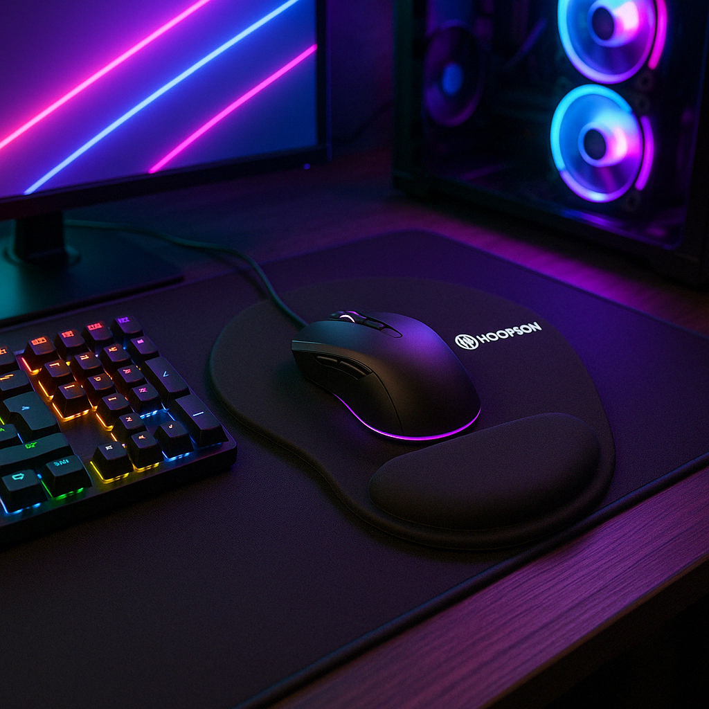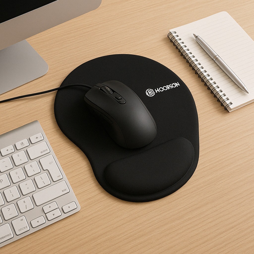 Mouse Pad Ergonômico Preto com Apoio para Pulso em espuma Revestido de Tecido super confortável