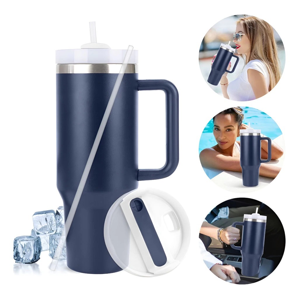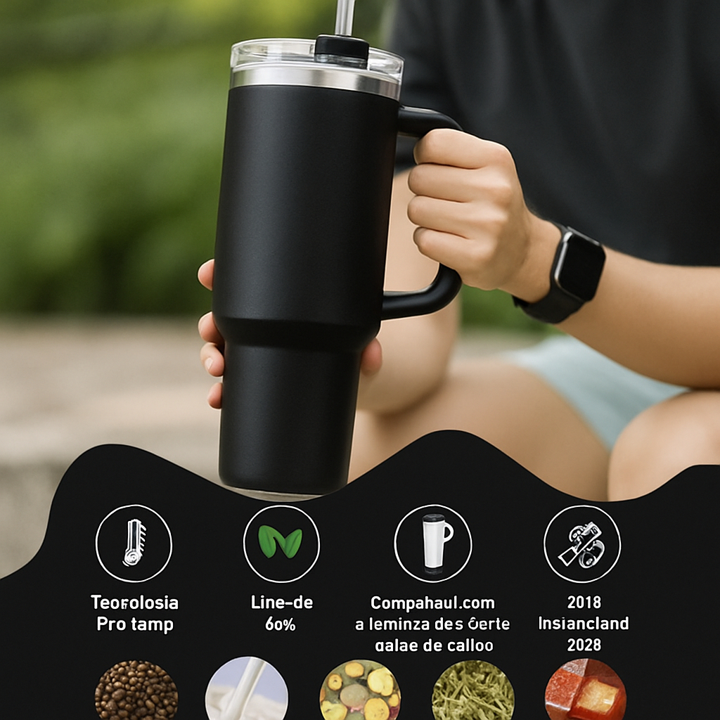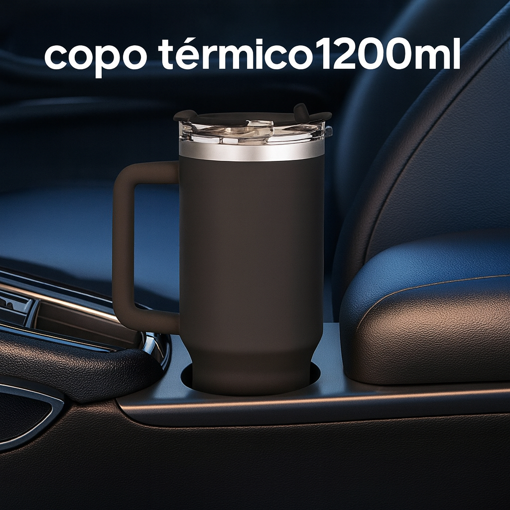 Copo Térmico Inox Premium 1200ml Portátil C/Tampa e Canudo – Alta Durabilidade COR PRETO