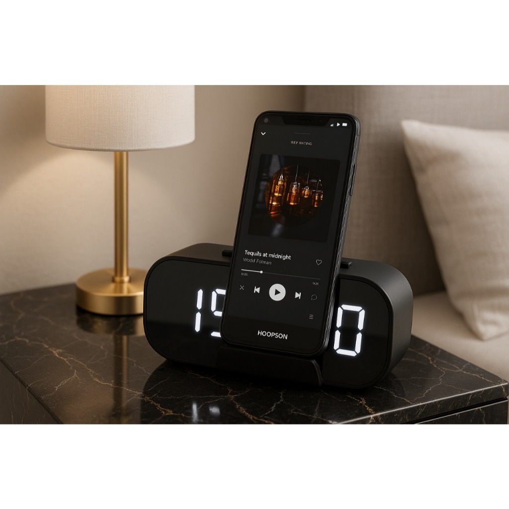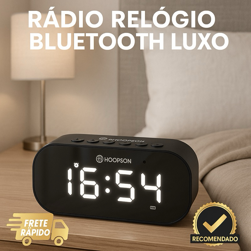 Rádio Relógio de Luxo Bluetooth com Despertador Display LED e Som Premium, Micro SD e AUX