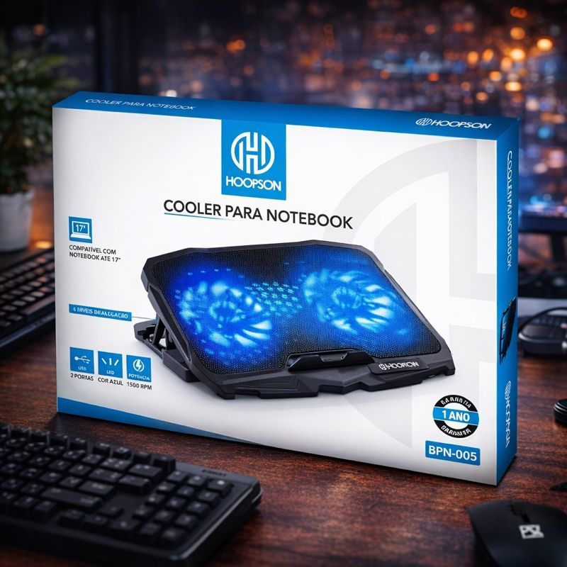 Base Cooler para Notebook Hoopson LED Azul 2 Fans Silenciosos USB Ajustável Original c/ Garantia