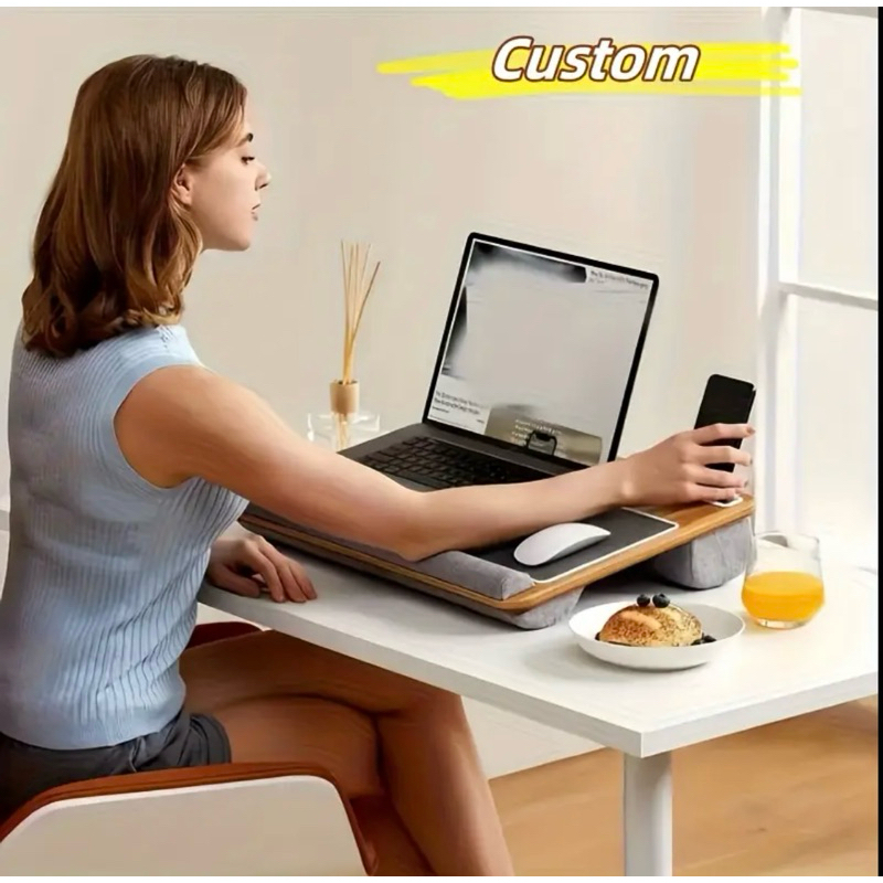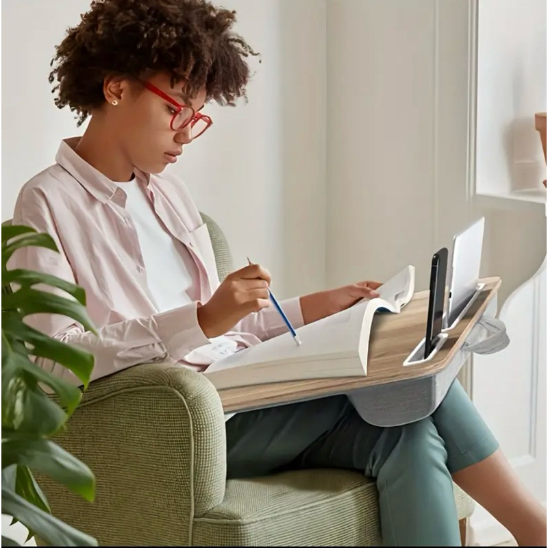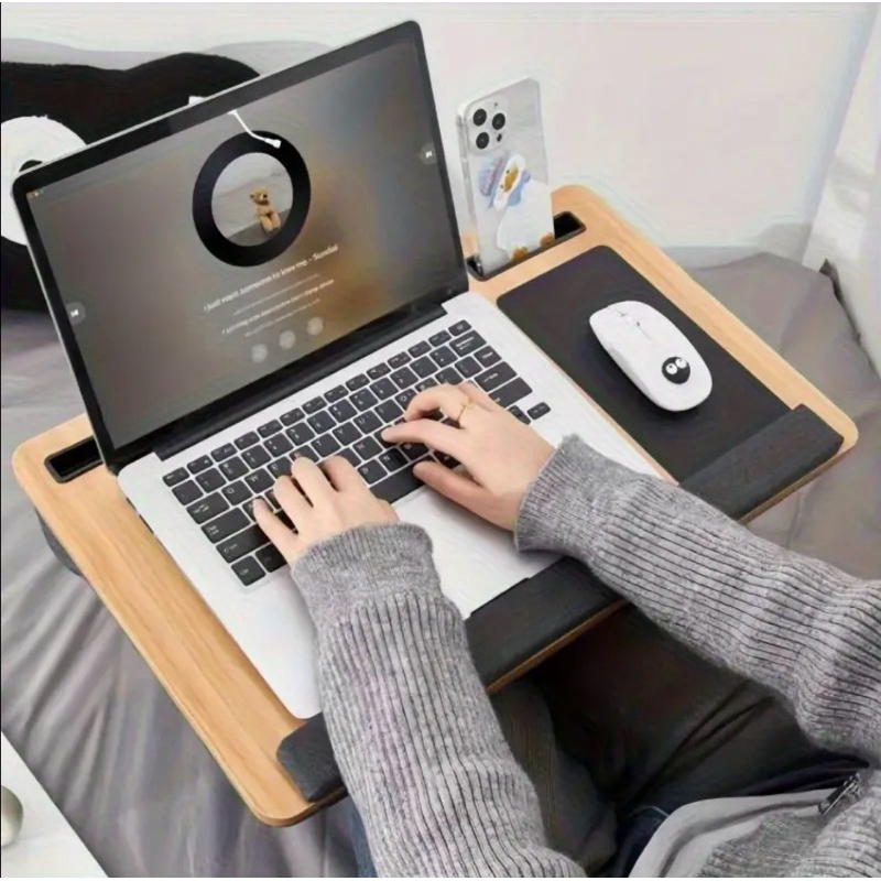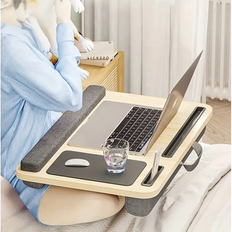 Mesa Base Portátil Premium de Colo p/ Notebook Acolchoada Home Office Quarto Escritório Cor: Madeira