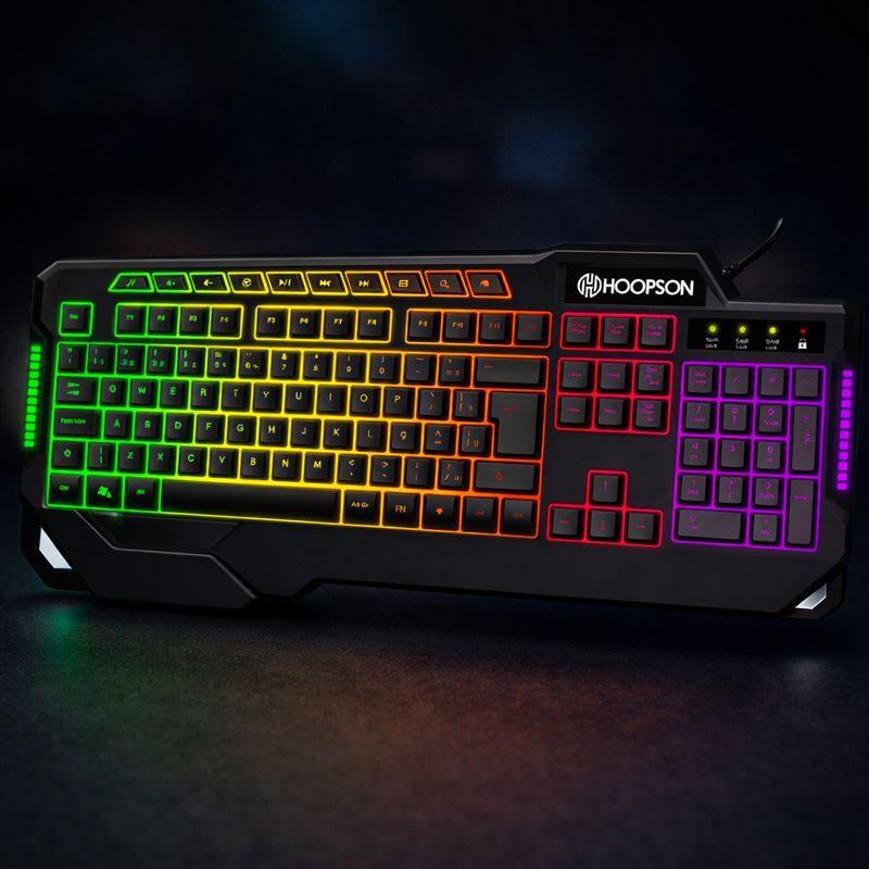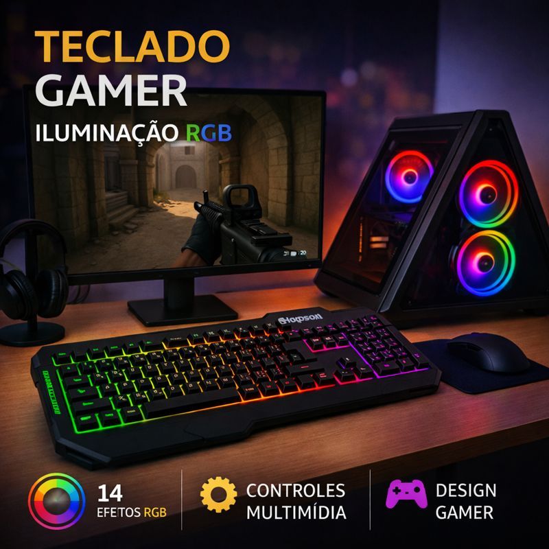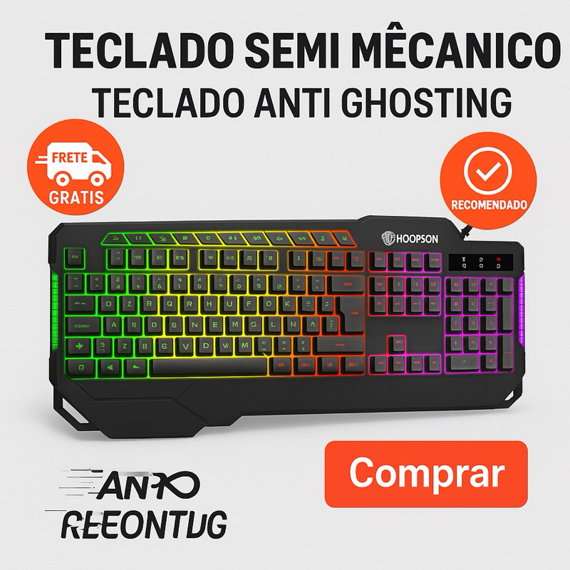Teclado Gamer Semi Mecânico RGB Anti Ghosting com Iluminação LED Colorida para PC e Notebook