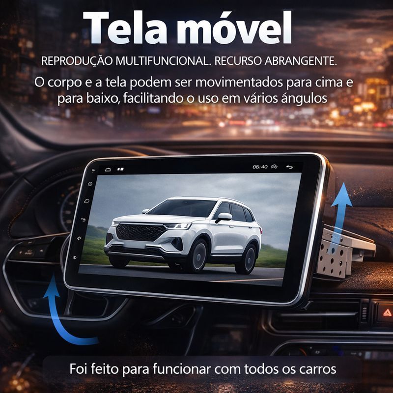Central Multimídia 10.1” Giratória CarPlay Android Auto Sem Fio e Espelhamento iOS Android FullHD