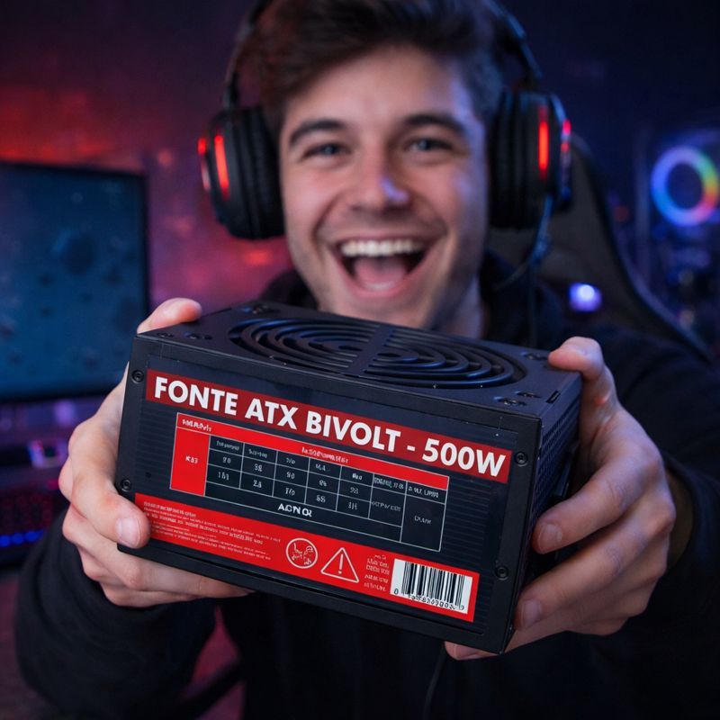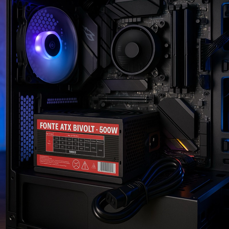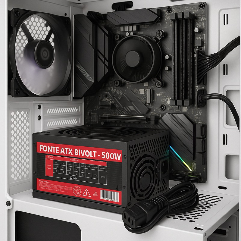 Fonte ATX 500W Reforçada Silenciosa Bivolt automática c/ Cooler 120mm + Cabo P/ PC Gamer Desktop