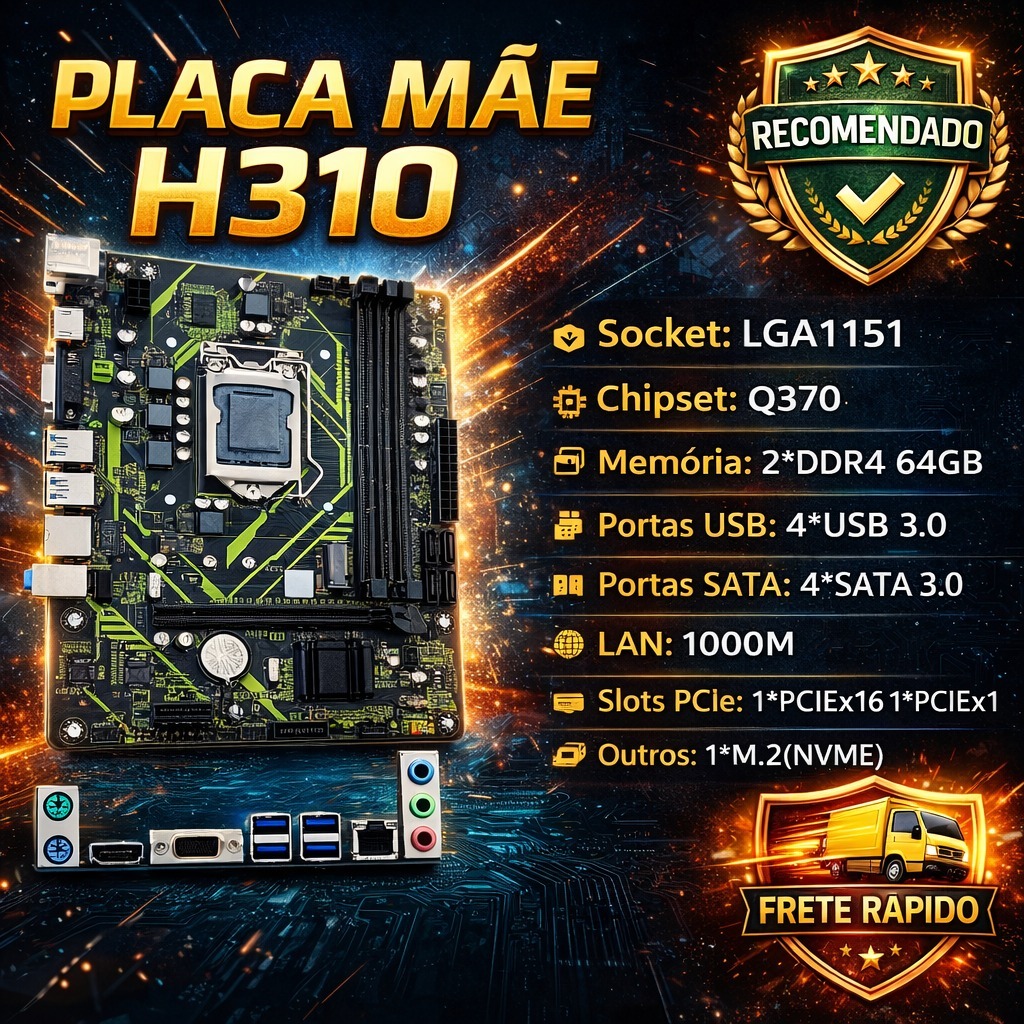 Placa-Mãe H310M LGA 1151 DDR4 M.2 HDMI m-ATX – Intel 8ª/9ª Geração Alta Performance