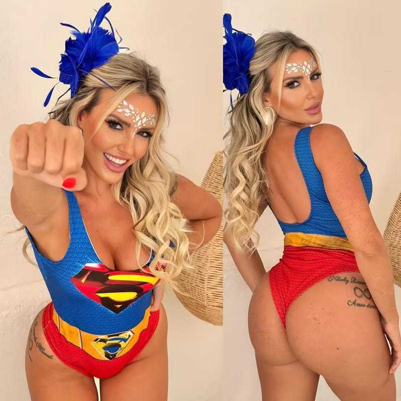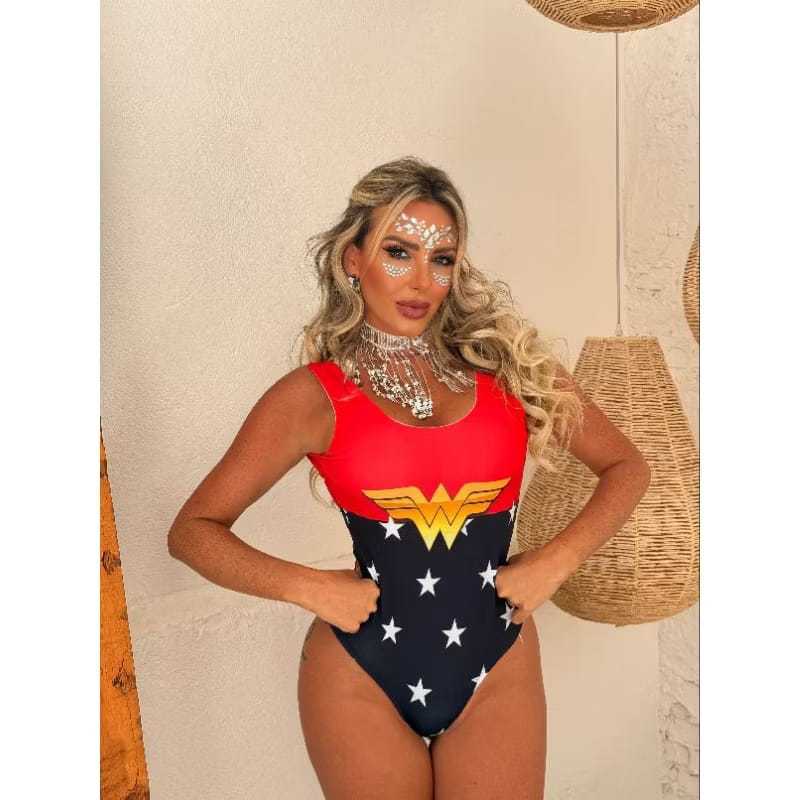 Body Fantasia Mulher Maravilha Super Girl Boteco Body Costa Nua, Carnaval 2026 festa ( envio Imediato ).