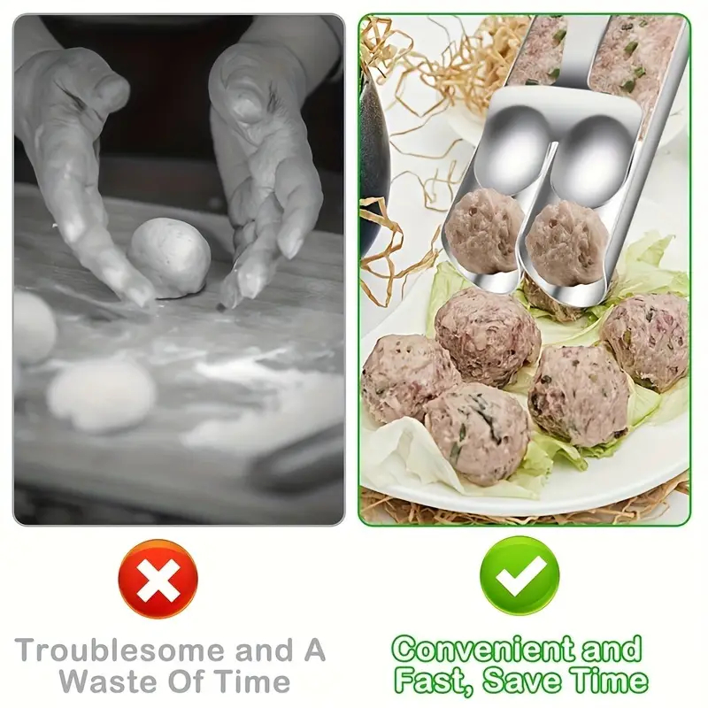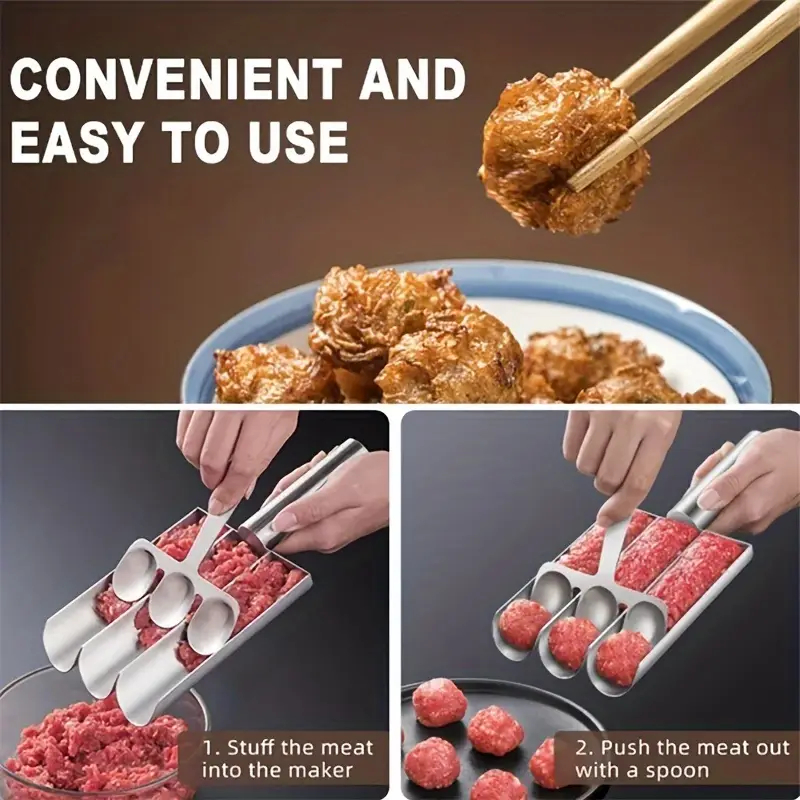 Fazedor De Almôndegas Triplo De Aço Inoxidável , Ferramenta Para Fazer De Carne , Colher Com Corte , Conjunto De Moldes