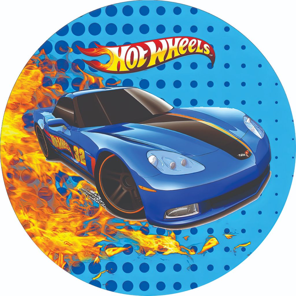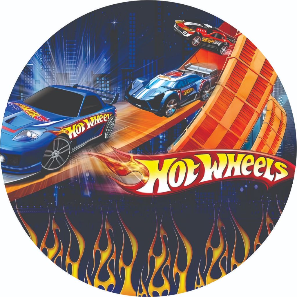 Capa para Painel de Festas Sublimado Redondo c/Elástico Veste Fácil 1.50 x 1.50 e 50 cm Hot Wheels carros