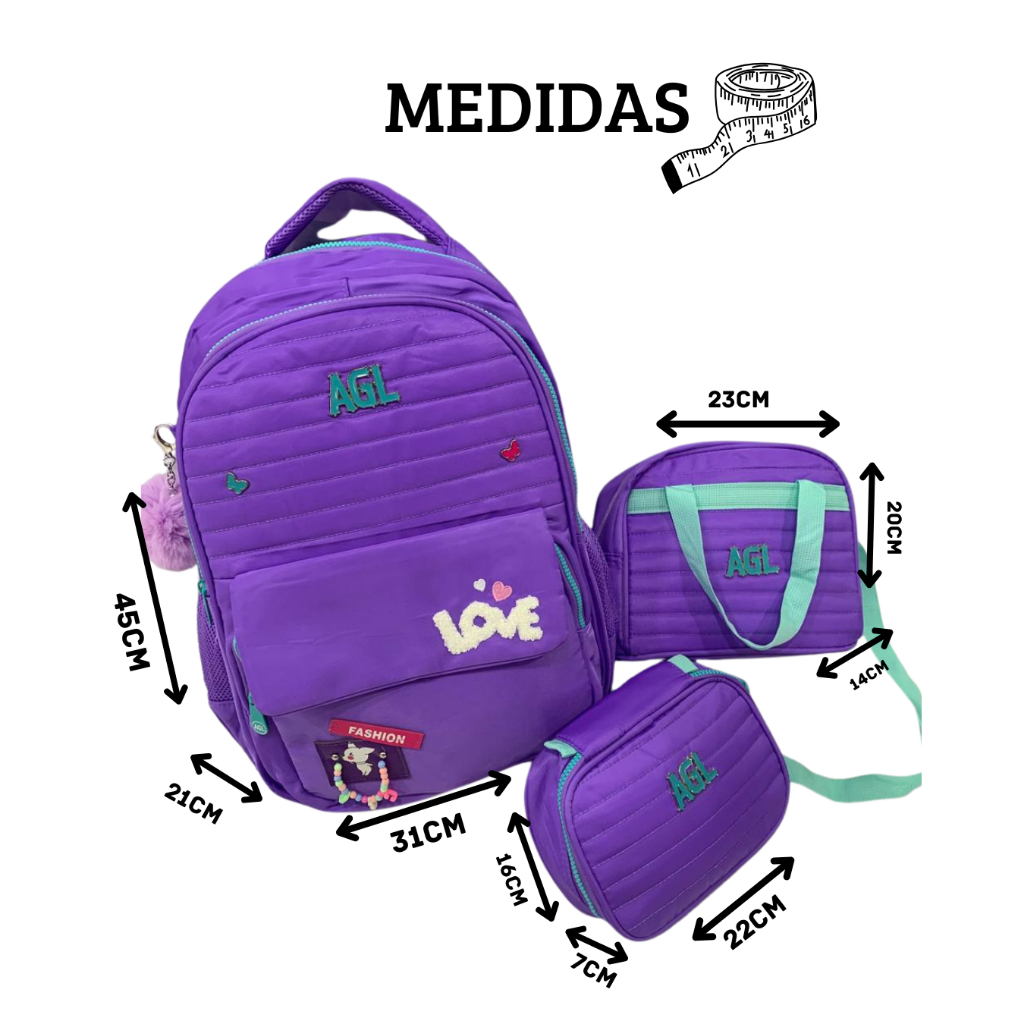 KIT MOCHILA ESCOLAR PRIMEIRA LINHA – ESTILO RB (3 PEÇAS: MOCHILA, LANCHEIRA E ESTOJO BOX)