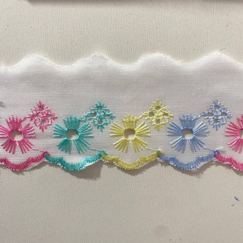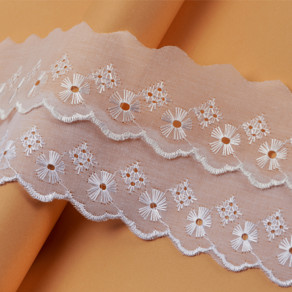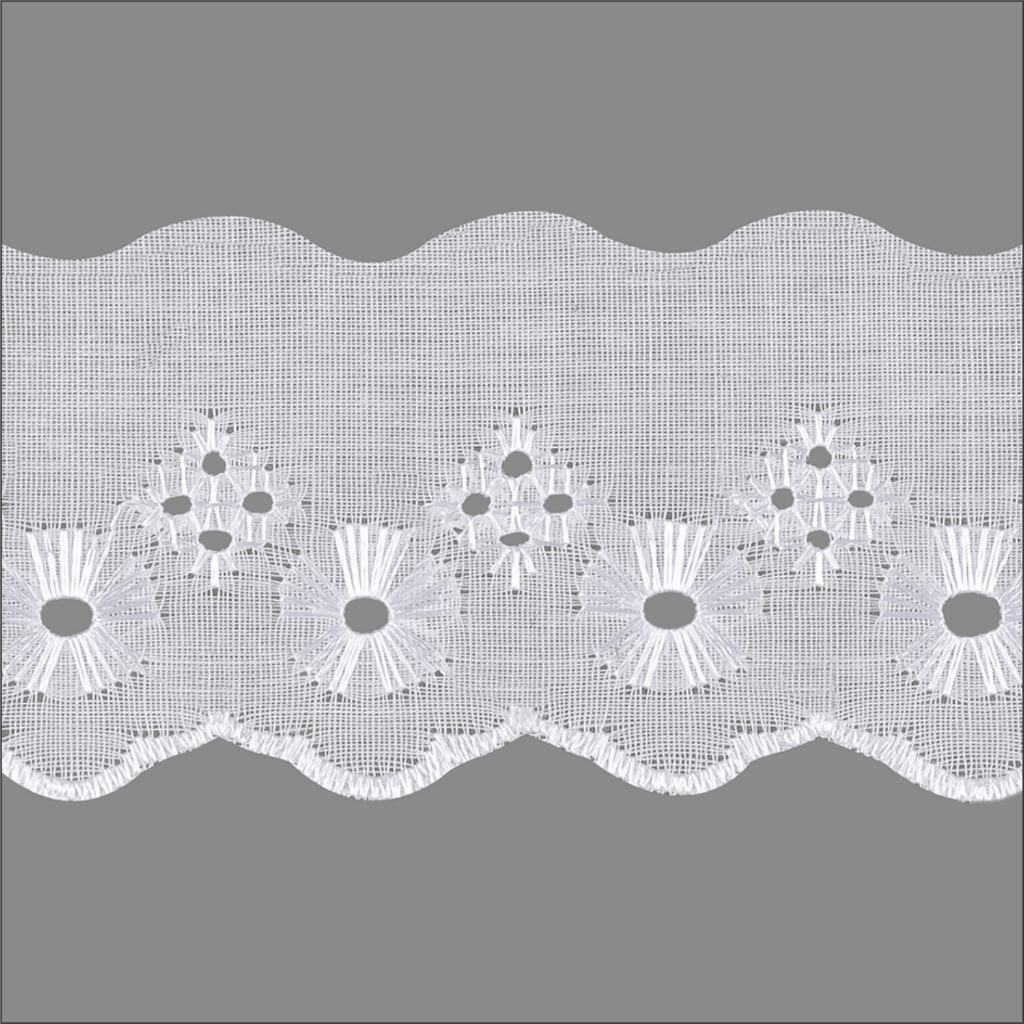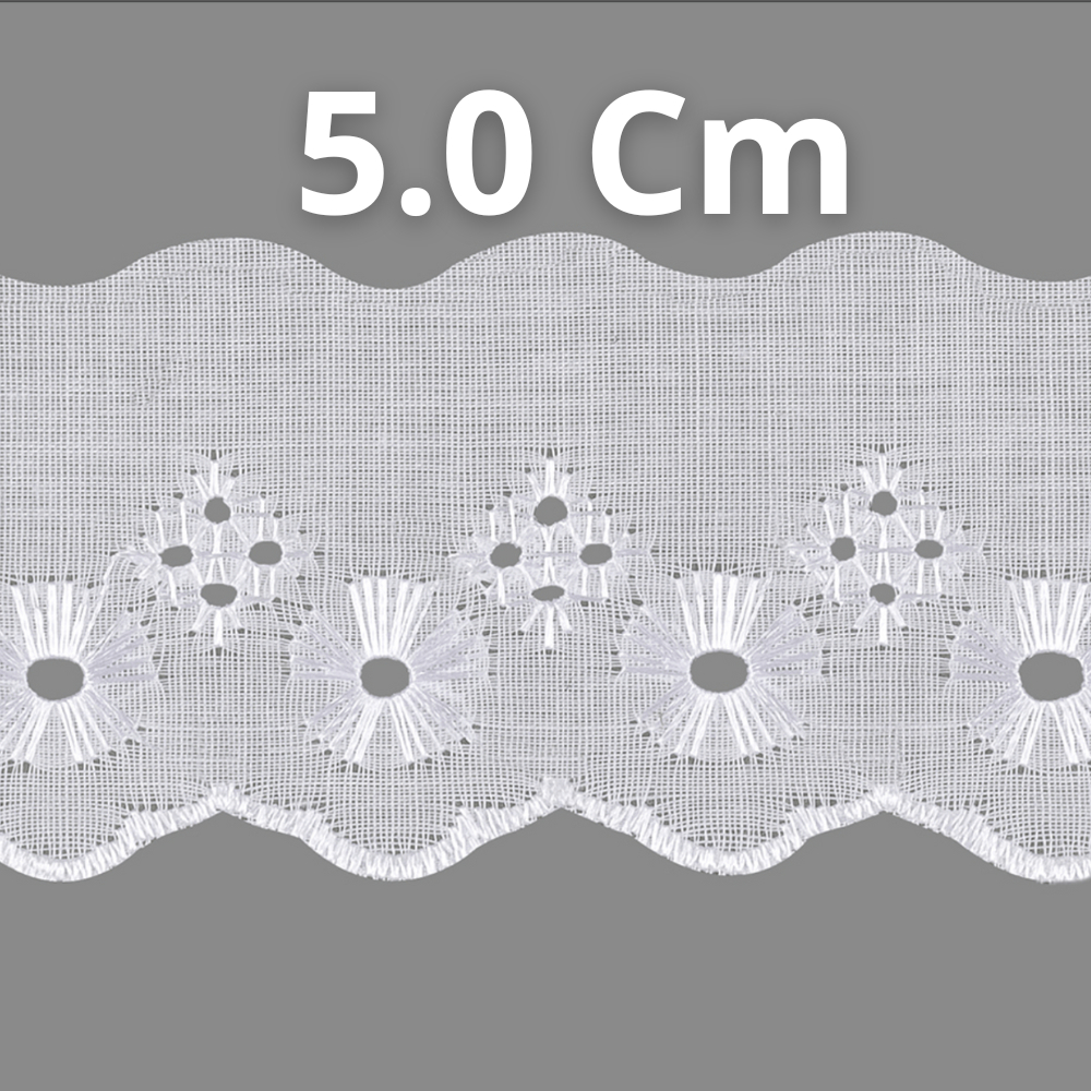 Bordado Inglês 5cm Peça com 13,7 metros - Lese Bico Tira Bordada - 90% Poliéster 10% Algodão.