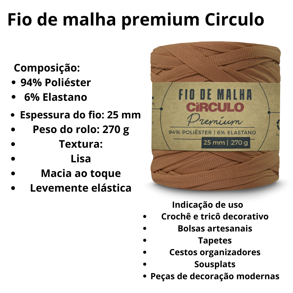 Fio de Malha Círculo Premium 25mm 140m – 94% Poliéster e 6% Elastano - Malha para Crochê, Bolsas