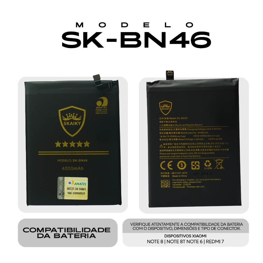 Bateria Oficial Skaiky BN46 Compativel Com XIAOMI REDMI NOTE 8