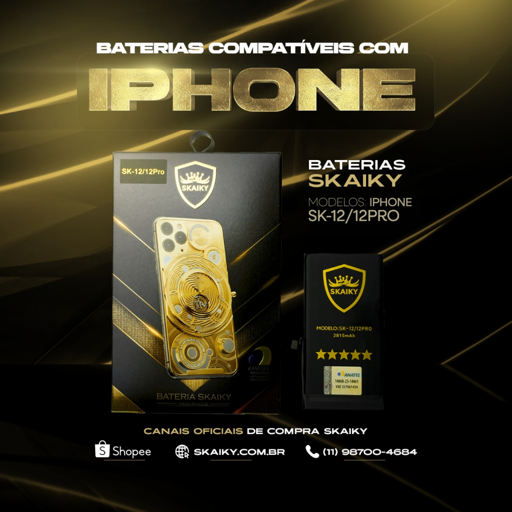 Bateria Premium Oficial Skaiky Compativel Com IPhone 12 / 12 PRO Homologada Anatel
