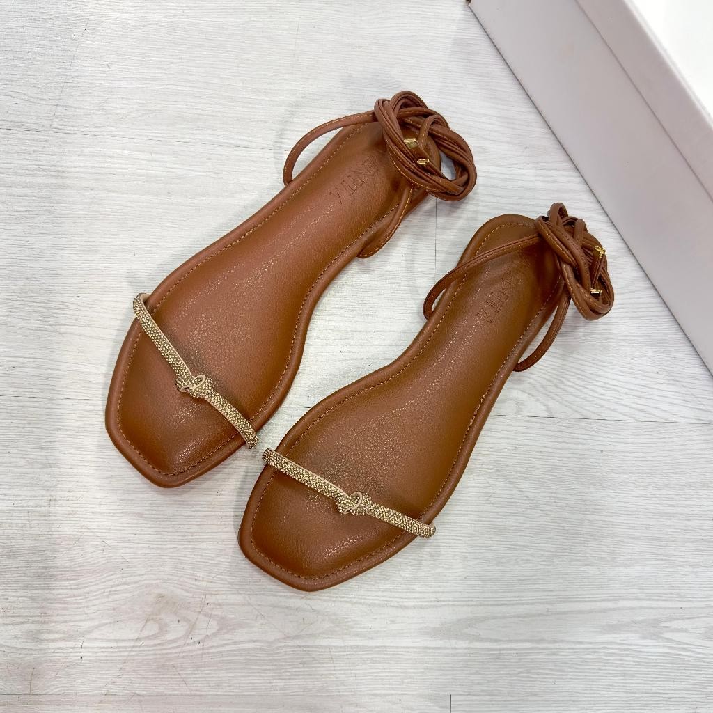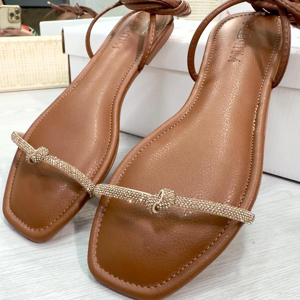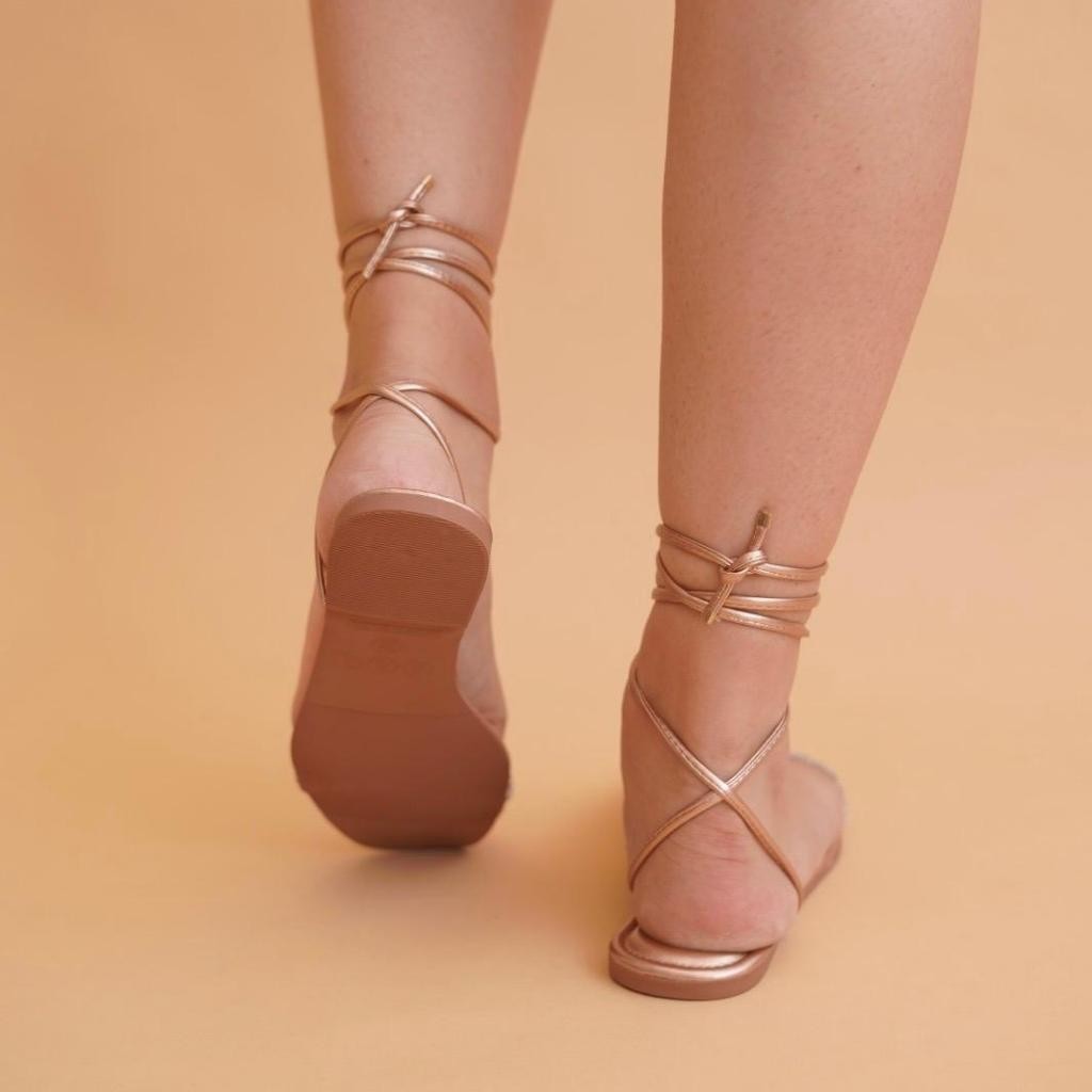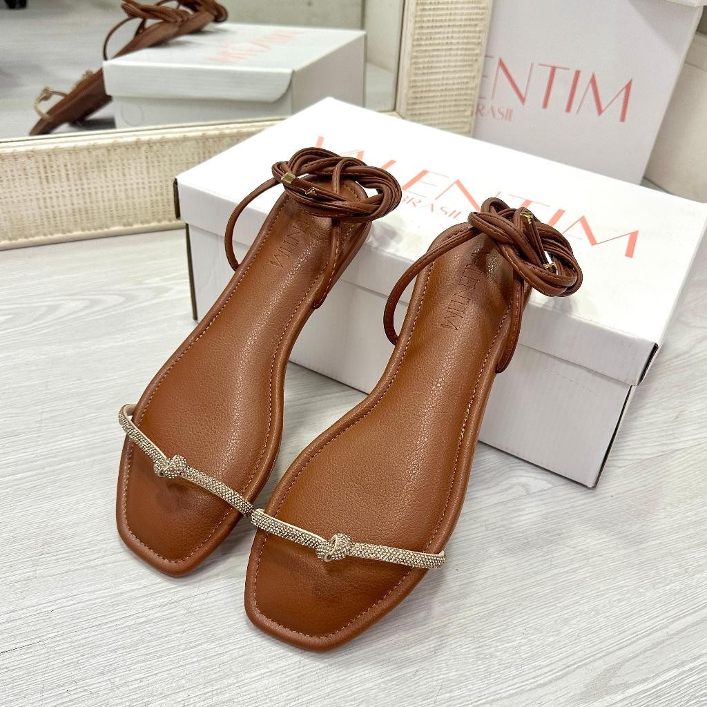 Sandalia Rasteira Feminina Gladiadora Estilosa 5000 Caramelo Moda Amarração Tendência Mulher Fashion