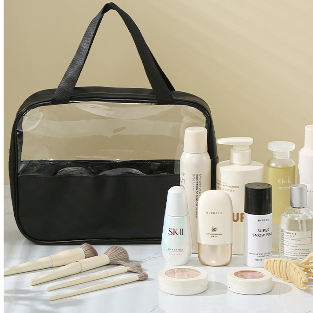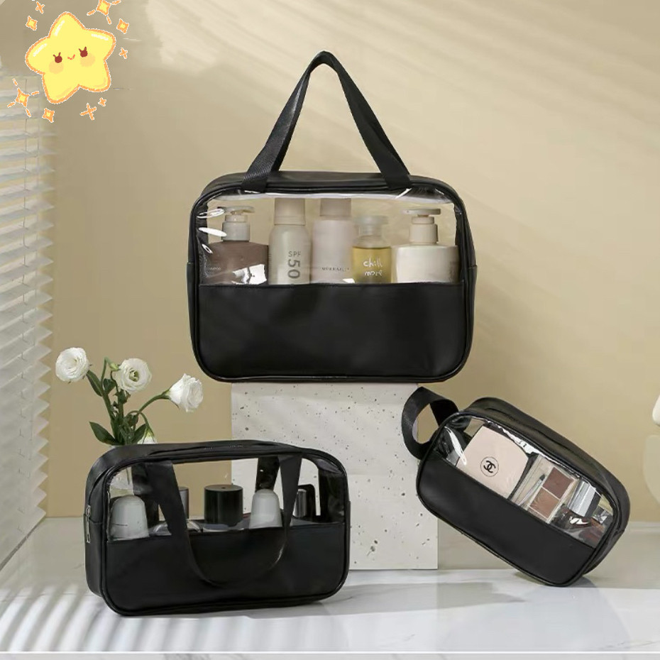 Kit 3 Necessaires Transparentes para Viagem - Organize Cosméticos e Produtos de Higiene Pessoal