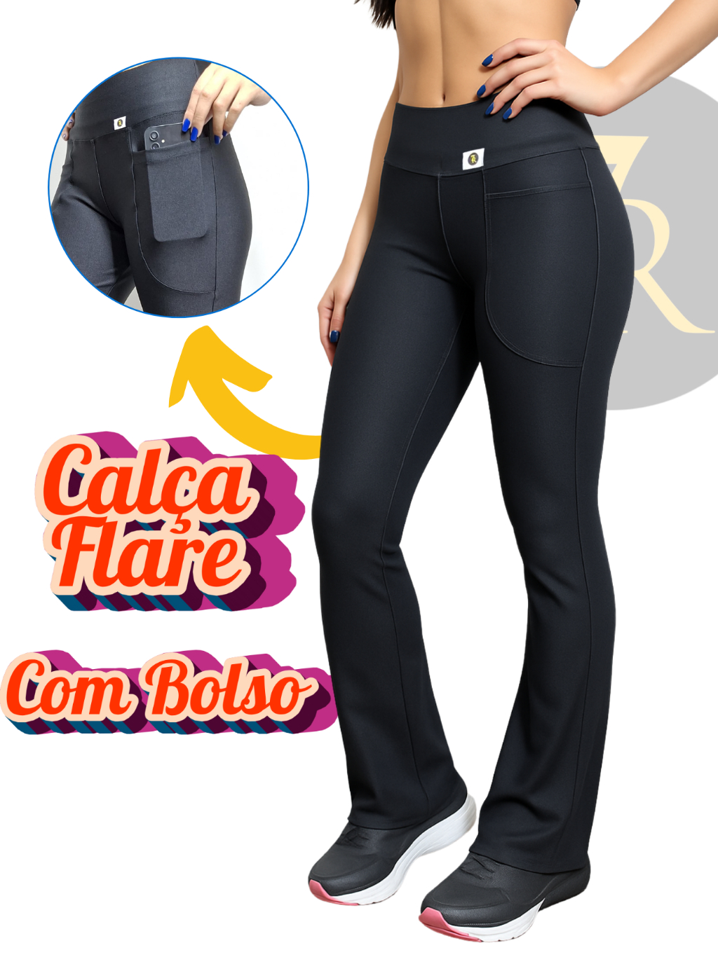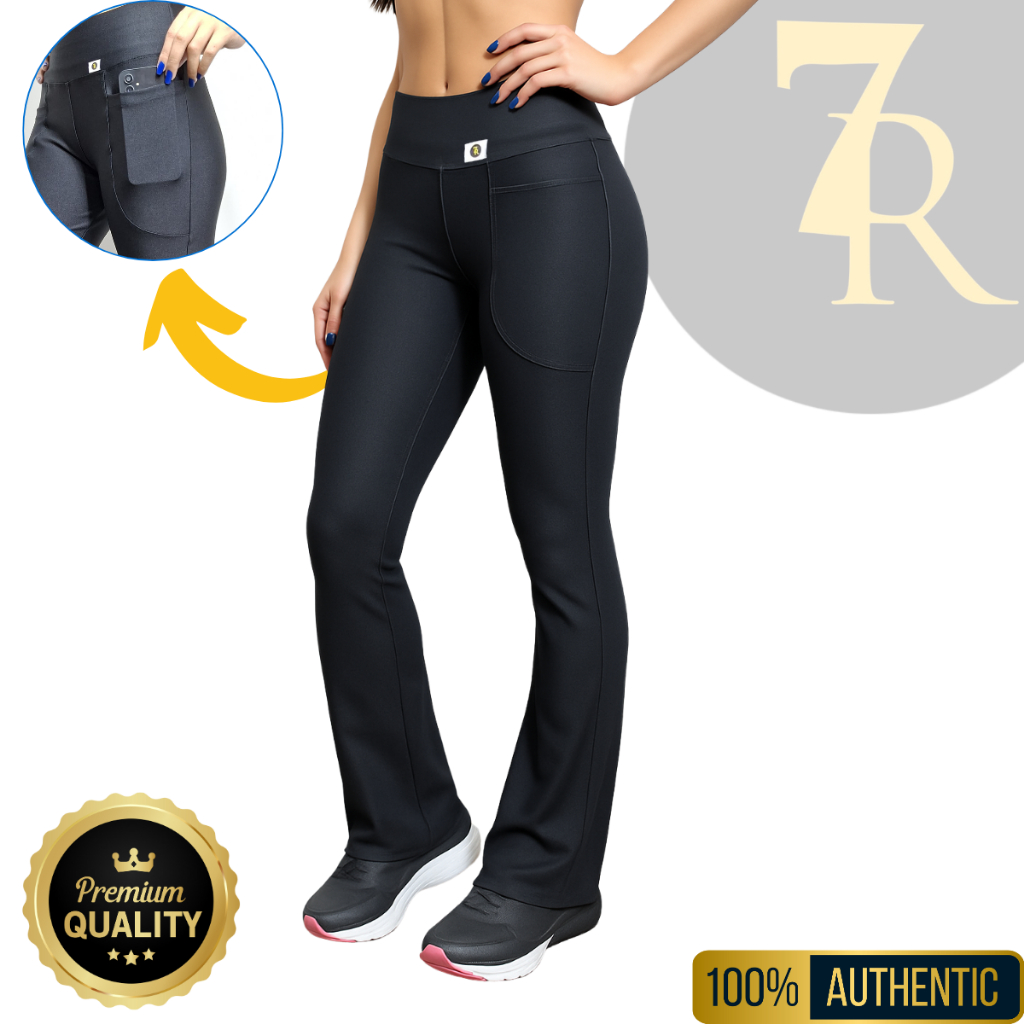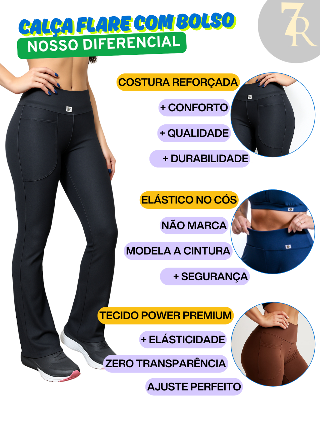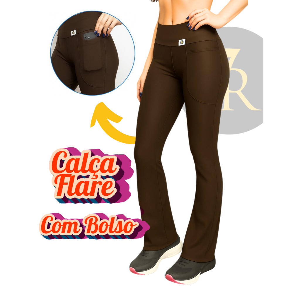 Calça Flare com Bolso Feminina 7 Regras, Zero Transparência; Cintura Alta; Tipo Bailarina.