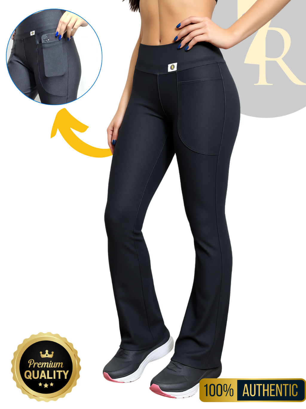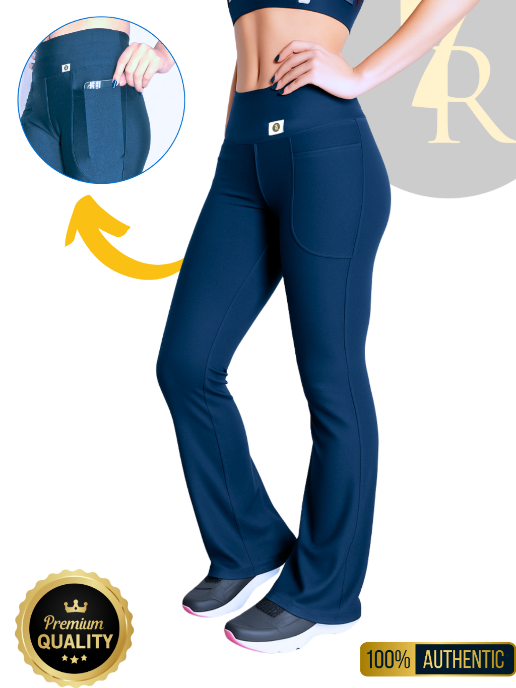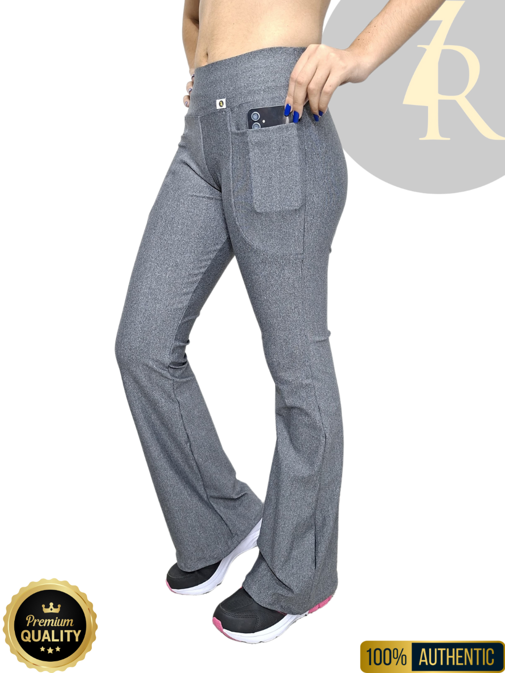 Calça Flare com Bolso Feminina 7 Regras, Zero Transparência; Cintura Alta; Tipo Bailarina.