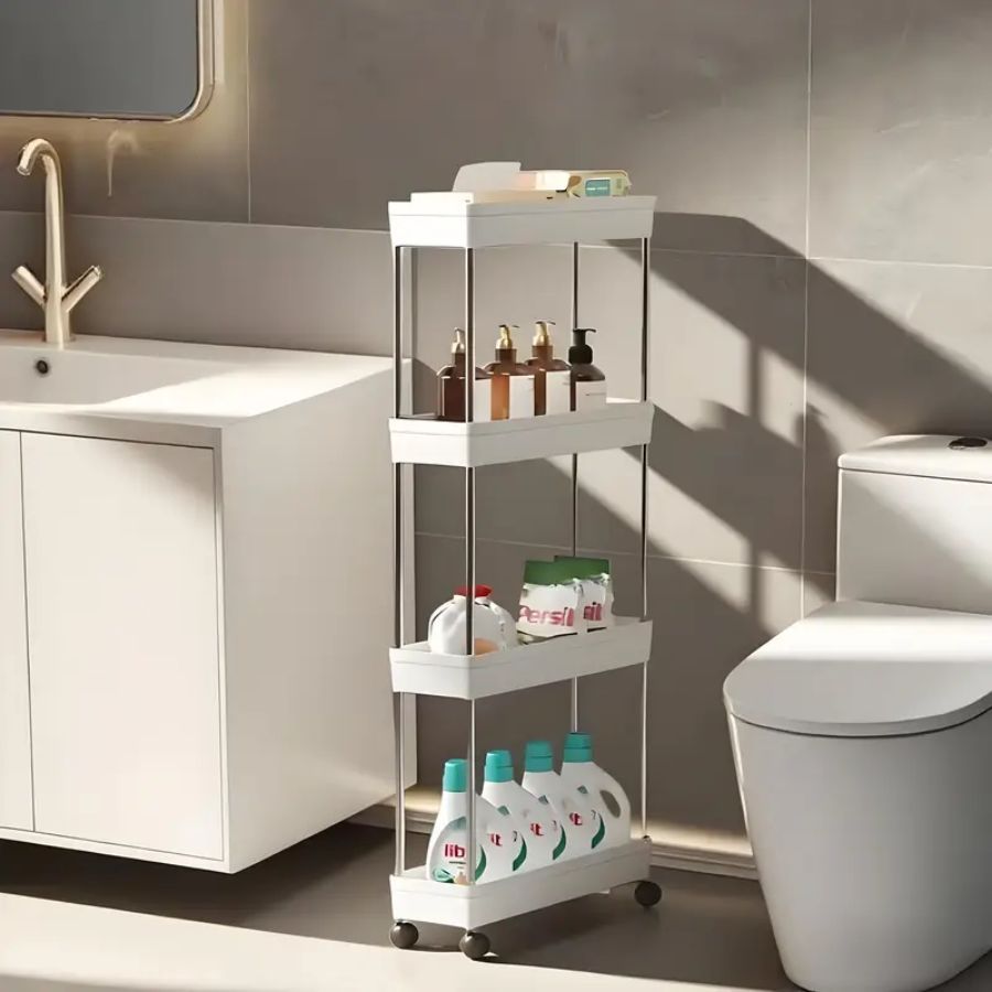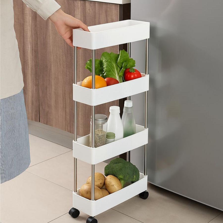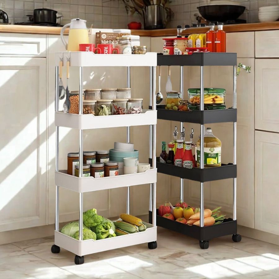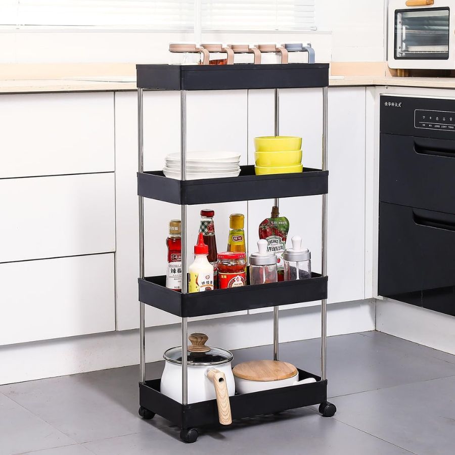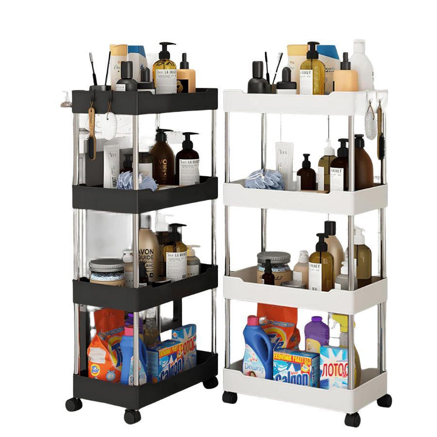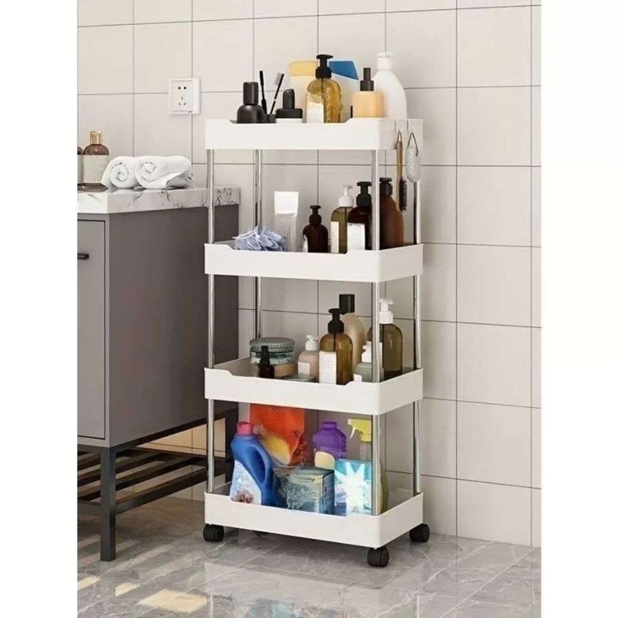 Carrinho Estreito com 4 Prateleiras em Polipropileno Auxiliar com Rodinhas P, M, G ou Kit 3