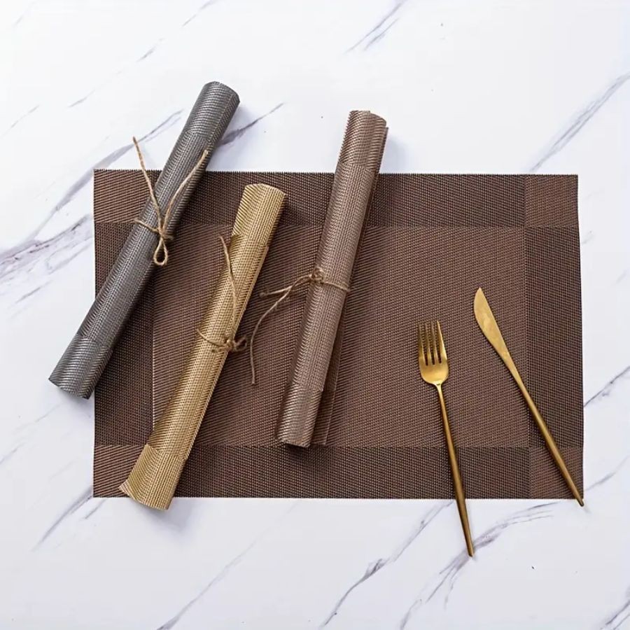 KIT 4 ou 6 Jogo Americano Metalizado em PVC Retangular Mesa Posta Sousplat