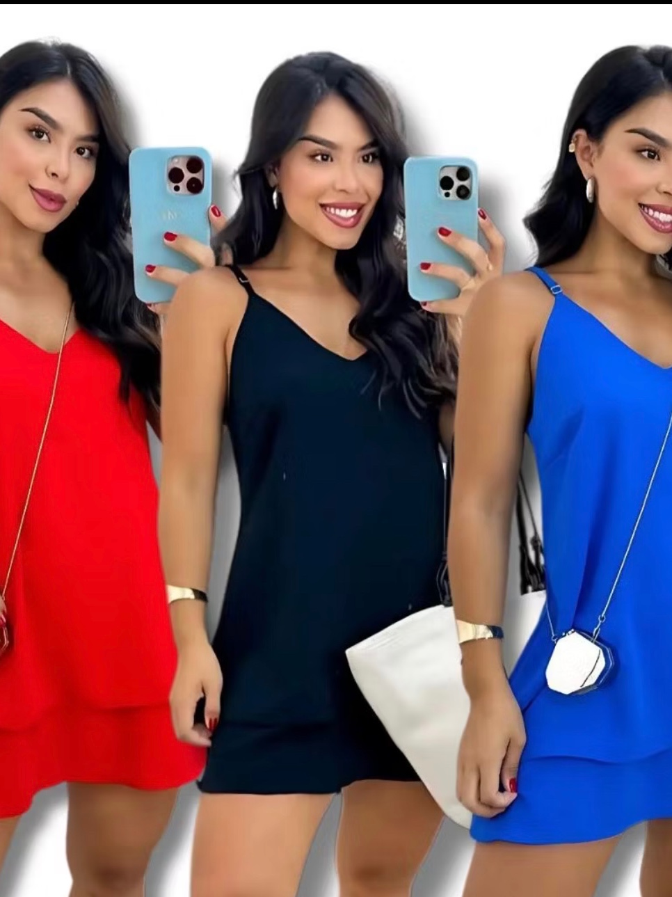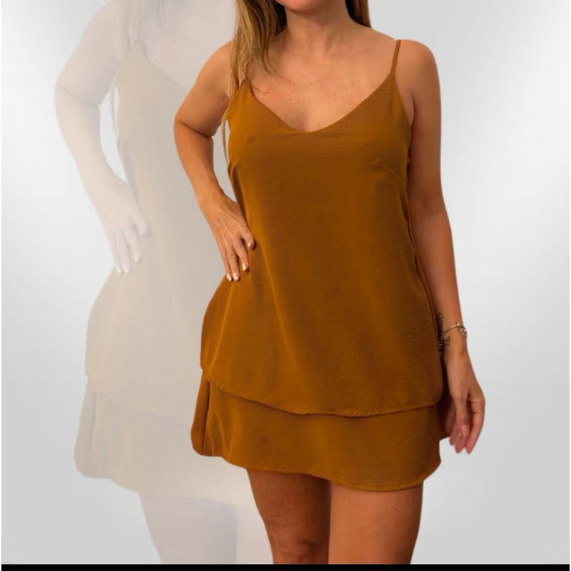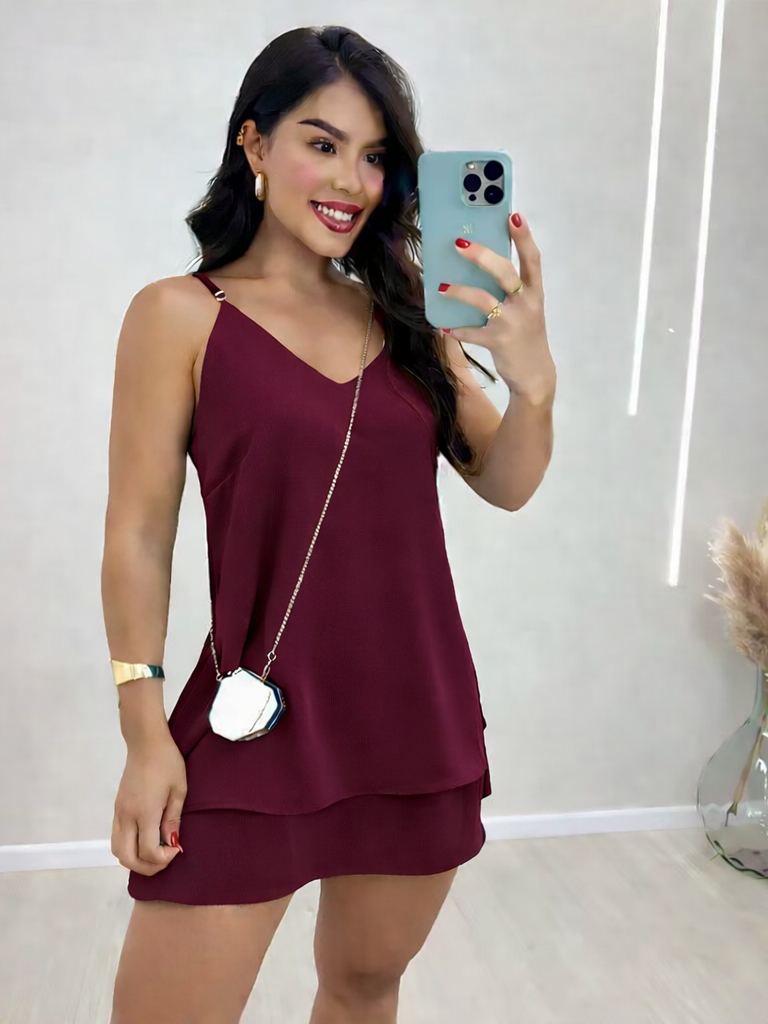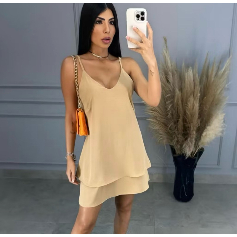 Vestido Feminin Camadas Babado Alca de regular Curto Crepe Duna Soltinho Leve n amassa Fresquinho Verão Moda Blogueira