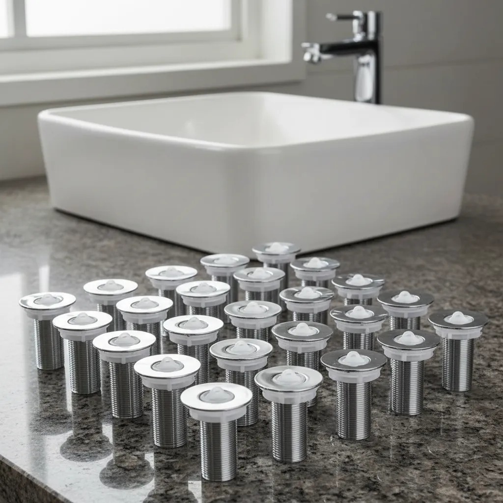 Pacote Com 25 Ou 50 Válvulas Cromado Lavatório Banheiro Pia Cuba ABS Plástico 7/8"