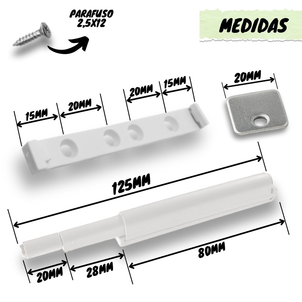 Kit 4 Fecho Pulsador Magnético Branco Toque Sobrepor Tip-on Push Open Porta Armário Gaveta Feicho Sistema Click