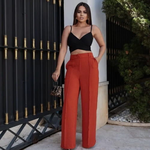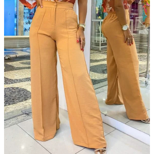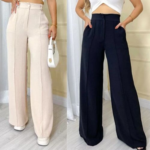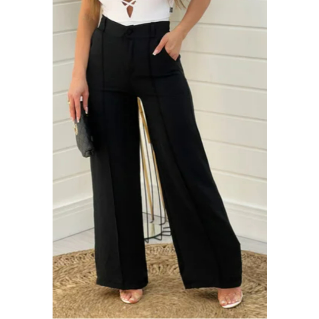 Calça Feminina Pantalona Duna Wide Leg Cintura Alta E Linhao