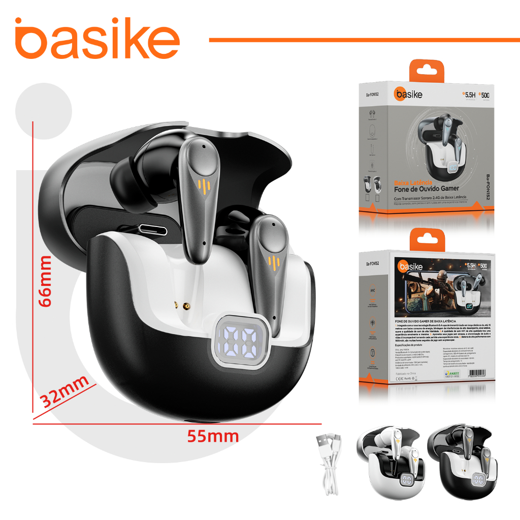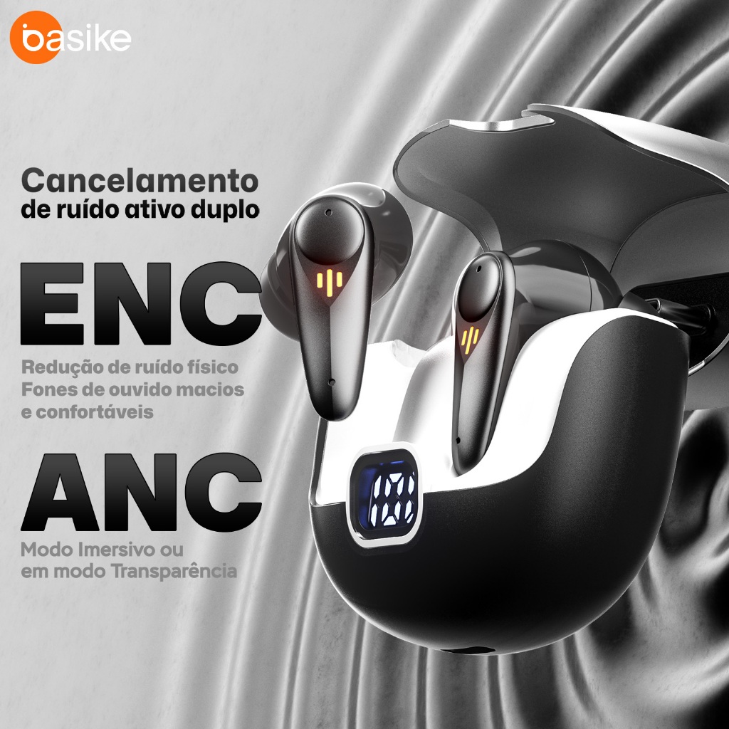 INOVA Basike fone de ouvido bluetooth TWS bluetooth 5.4 Com exibição digital de alta definição