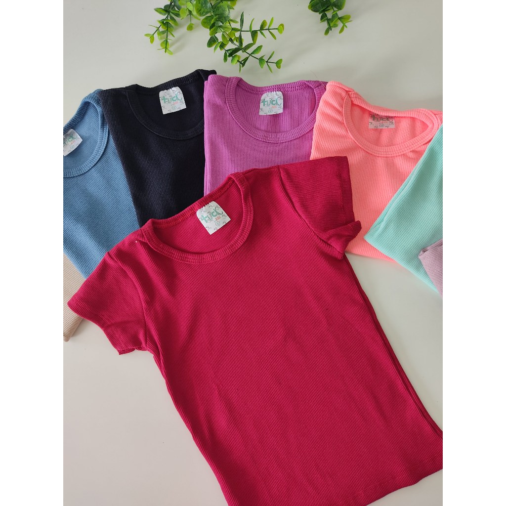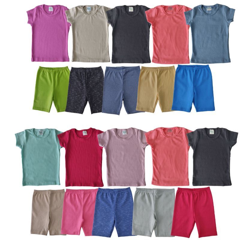 Kit 10 Peças 5 Blusas Canelada + 5 Bermudinha Ciclista Infantil Verão Menina Tamanho 1 ao 10 anos