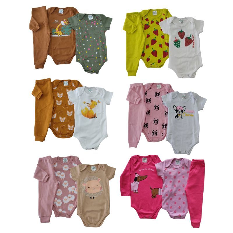 Kit 9 peças body infantil Menina Manga Longa e Manga Curta Tamanho RN/P/M/G/GG