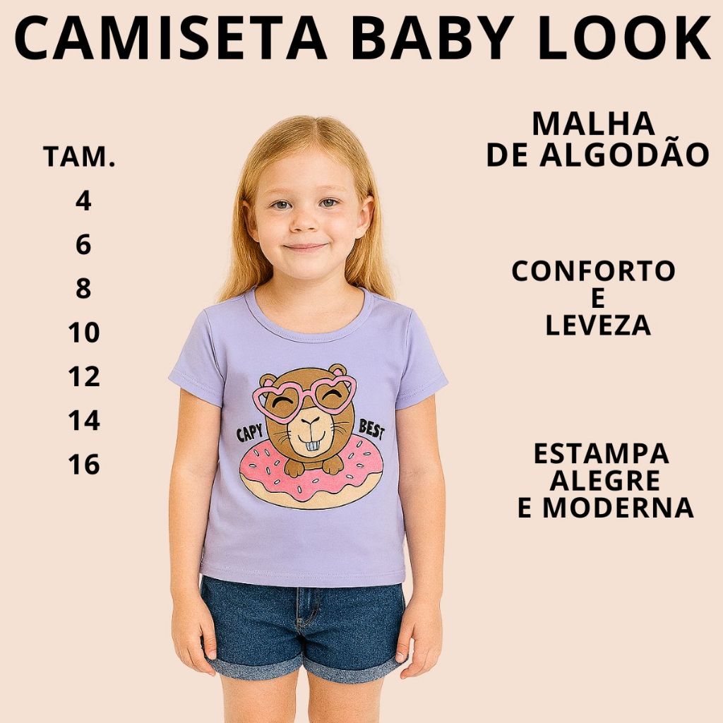 Blusa Baby Look com Estampa Infantil Juvenil meia Malha 3302-A