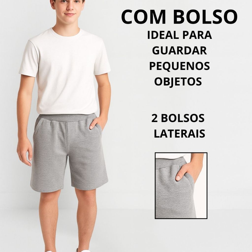 Bermuda moletom Infantil Juvenil Menino 2 Bolsos Lisa 3238-A