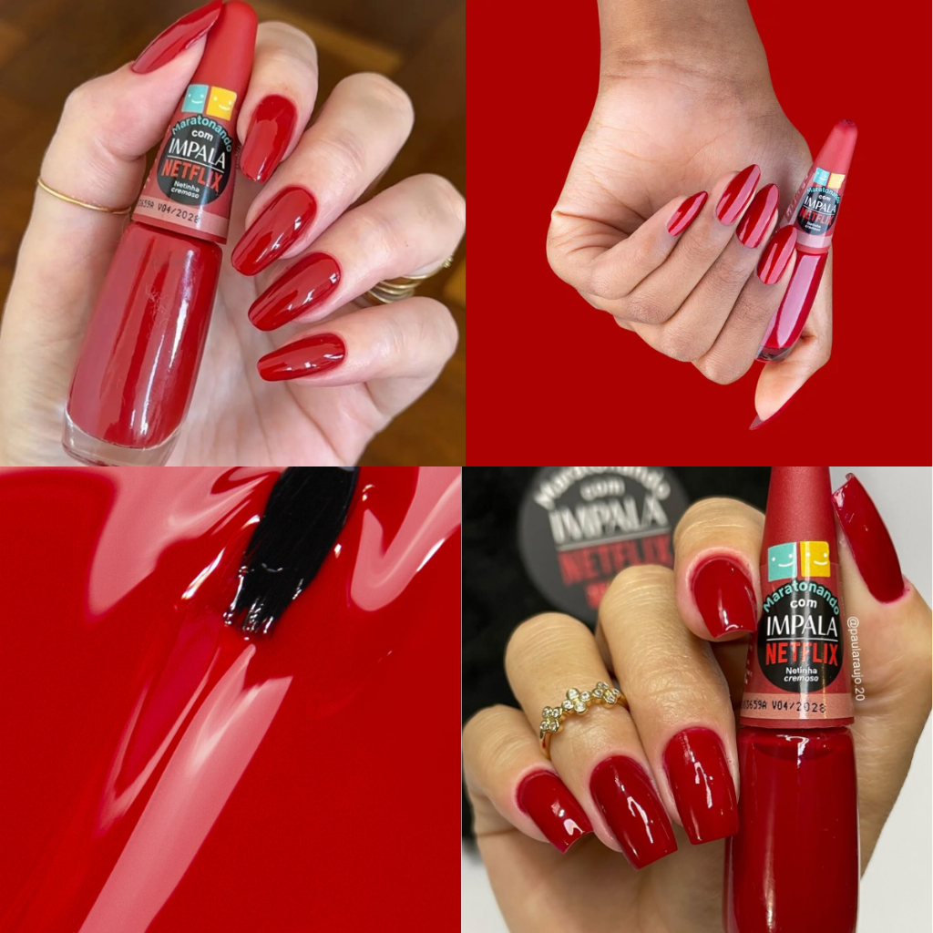 Kit 2 Esmaltes Impala Cores Da Moda Vermelho e Rosa Tendências Manicure Pedicure Mais Vendidos