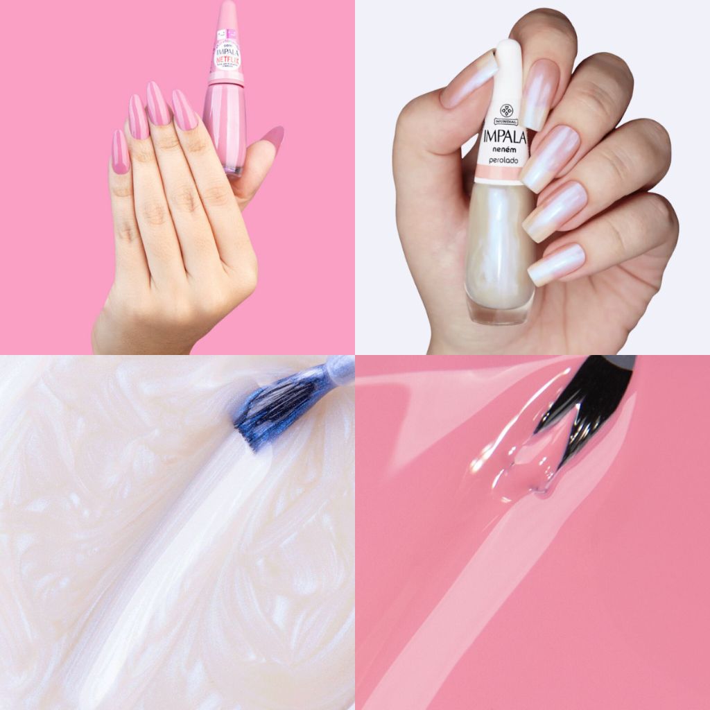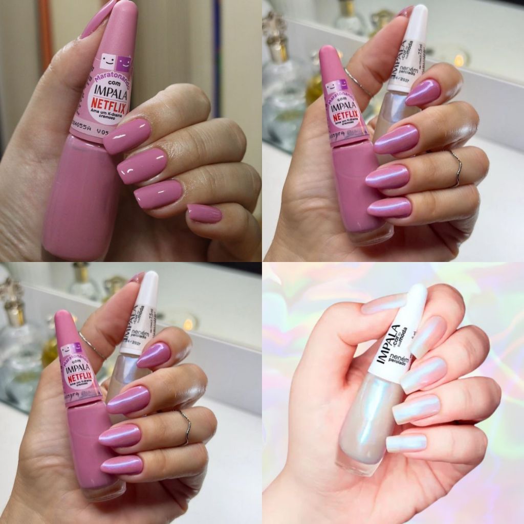 Kit 2 Esmaltes Impala Coleção Netflix e Neném Perolado Tendências Mais Vendidas Manicure Pedicure